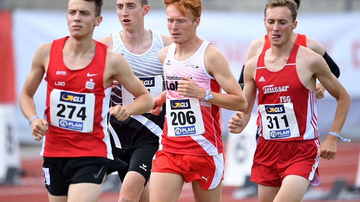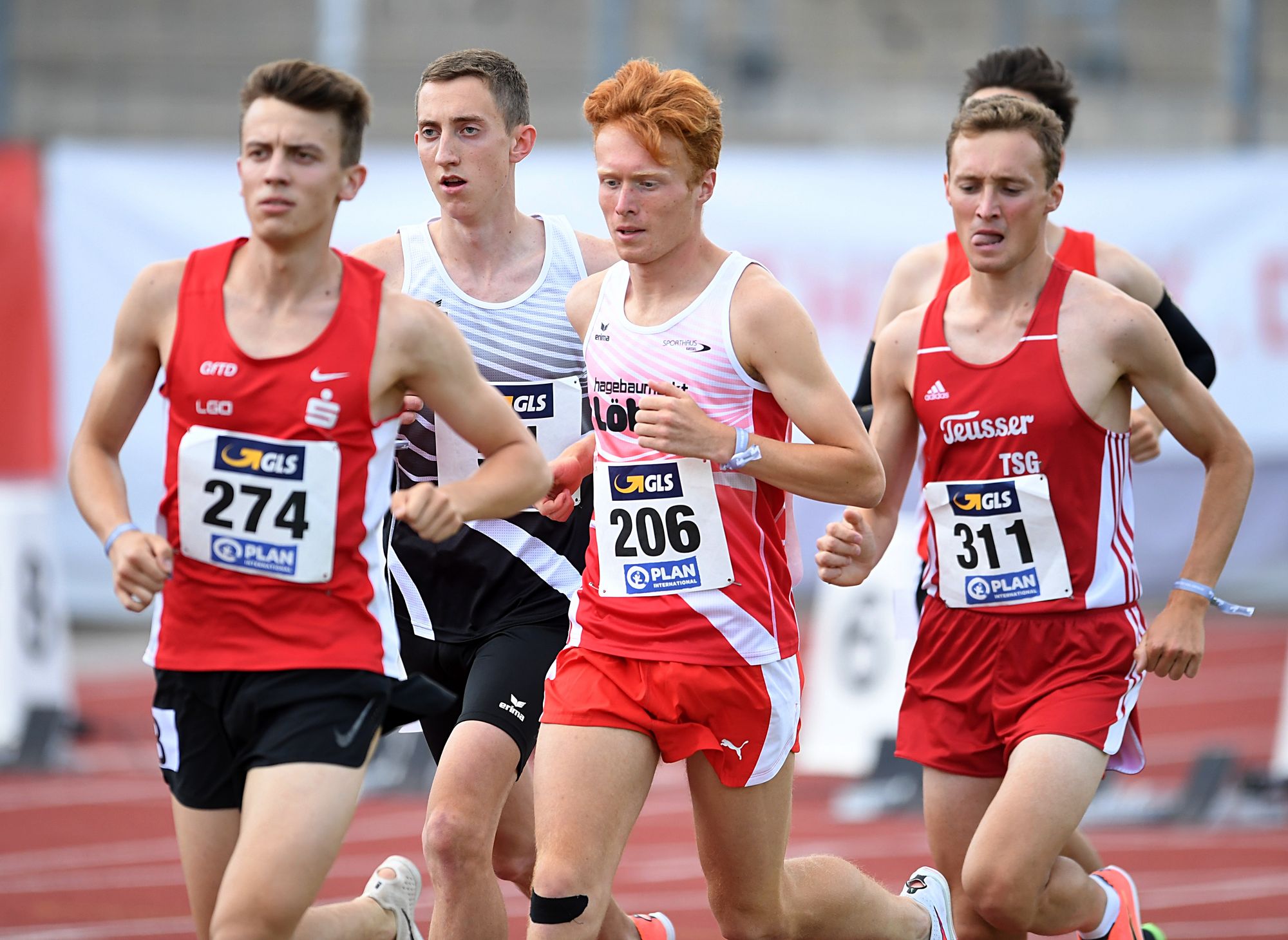 Bereits kurz nach dem Start der 5000 Meter war klar, dass hier nicht auf Zeit gelaufen wird. Der erste Kilometer wurde in 3:23 Minuten passiert, eher ein lockeres Jogging-Tempo für die acht Jungs. Erst auf den beiden letzten Runde wurde das Tempo dann deutlich angezogen. Elias Schreml holte sich in 15:40,03 Minuten den Titel, knapp vor Yassin Mohumed (15:40,47 min.). Somit hatten zwei Athleten von der LG Olympia Dortmund die Nase vorne. Das Podium bei diesem typischen Meisterschaftsrennen komplettierte als Dritter Bastian Mrochen (LG Reinhardswald/15:42,21 min.). Mit einem fulminanten Endspurt erkämpfte sich Marius Abele (SSC Hanau-Rodenbach) mit 15:42,75 Minuten noch den vierten Platz.