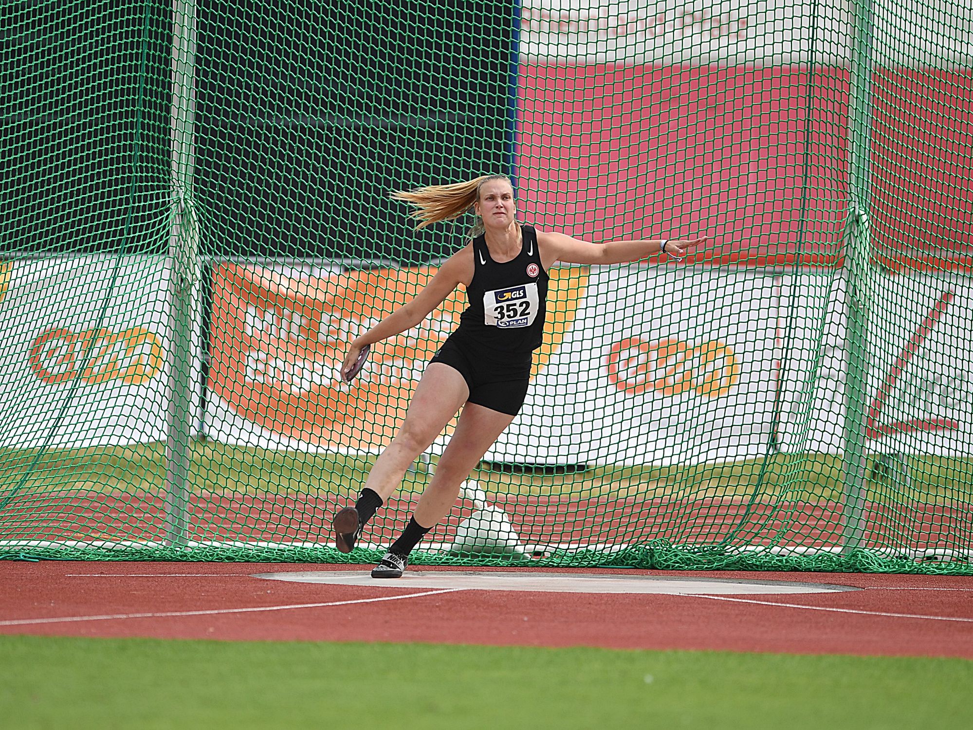 Beim weiblichen Nachwuchs war Charleen Zoschke ganz nah an einer Medaille dran. In der ersten Runde der Diskuskonkurrenz passte es bei der Eintracht-Werferin noch nicht. Dann folgten 51,15 und 52,28 Meter. Das bedeutete nach dem Vorkampf Platz drei. Doch die Freude darüber währte nicht lange, denn Michelle Santer (SV Preußen Berlin) konterte gleich im vierten Durchgang mit 52,46 Meter und gab den dritten Platz dann auch nicht mehr ab. Charleen fehlten am Ende 19 Zentimeter zu Edelmetall. An der Spitze des Feldes warf Antonia Kinzel (SSV Ulm) den ein Kilogramm schweren Diskus mit 57,88 Metern in eine andere Dimension.