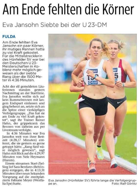 Deutsche U23-Meisterschaften in Koblenz – Eva Jansohn vom Hünfelder SV über 1.500m auf Platz „7“