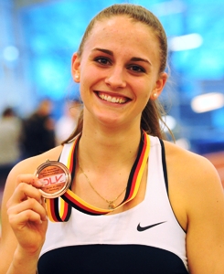 Ebenfalls Zweite, allerdings in der U20, wurde Vanessa Grimm von der LG Reinhardswald im Fünfkampf. „Eine optimale Platzierung“, fasste Schlesinger zusammen. Die Siegerin Lisa Maihöfer (LG Staufen) stellte mit 4.373 Zählern eine neue deutsche U20-Hallenbestleistung auf und lag am Ende fast 700 Punkte vor der Hessin (3.685), die sich knapp gegen Kristin Tuxford (LG Region Karlsruhe/3.664) durchsetzte. Auf dem Weg dorthin haderte Vanessa Grimm mit ihren mäßigen Sprungergebnissen (1,63 Meter im Hoch- und 5,46 Meter im Weitsprung), zeigte aber über 800 Meter (2:26,35 Minuten) Kämpferqualitäten. „Sie hat sich ihre Kräfte gut eingeteilt“, sagte Schlesinger. Die weiteren Einzelleistungen: 9,34 Sekunden über 60 Meter Hürden und 11,78 Meter im Kugelstoßen.