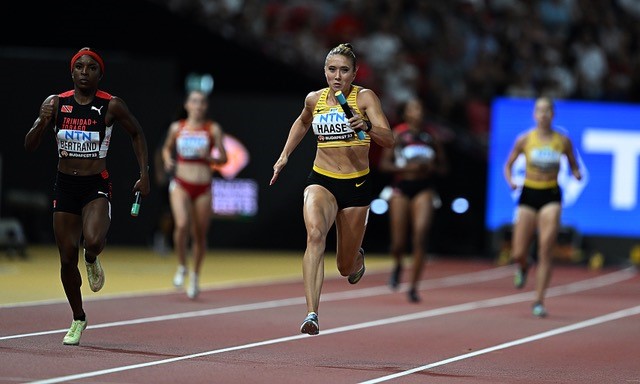 Nachdem die Frauen in der Besetzung Louise Wieland (Hamburger SV), Sina Mayer (LAZ Zweibrücken), Gina Lückenkemper (SCC Berlin) und Rebekka Haase (Sprintteam Wetzlar) nach 42,78 Sekunden als Vierte ins Ziel gekommen waren, musste der zweite Lauf abgewartet werden. Hier waren die Teams der Niederlande (42,53 sec.) und Polen (42,65 sec.) dann schneller unterwegs und „Team Deutschland“ (vorerst) raus. Doch die langen Gesichter hellten sich noch auf. Der erste Wechsel zwischen Wieland und Mayer lief nicht „rund“, was wertvolle Zeit kostete. Grund hierfür war jedoch eine Behinderung von Louise Wieland durch die Australierin auf der Nebenbahn. Die Teamleitung legte gegen die Behinderung Protest ein, dem stattgegeben wurde. Zum Glück für die das DLV-Quartett verfügt das Stadion über neun Rundbahnen. Somit werden die Karten im Finale neu gemischt.