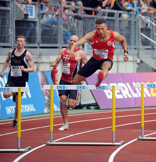 Die gute Nachricht zuerst: Am Schlusstag der deutschen Meisterschaften in Nürnberg ist Luke Campbell von der LG Eintracht Frankfurt seiner Favoritenrolle über 400 Meter Hürden vollauf gerecht geworden und hat in 50,31 Sekunden seinen Titel verteidigt. Ebenfalls stark und auf Platz drei notiert: Sein Vereinskollege Joshua Abuaku in 51,25 Sekunden. Zwischen die beiden Frankfurter schob sich Constantin Preis (VfL Sindelfingen) in persönlicher Bestzeit von 50,74 Sekunden.