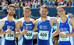 Über 4x100 Meter verpassten die schnellen Sprinter der LG Friedberg-Fauerbach (Lars Hieronymi, Florian Daum, Michael Pohl, Felix Göltl) zwar um fünf Hundertstel den seit sieben Jahren bestehenden Hessenrekord des eigenen Klubs, liefen aber in Jahresbestzeit von 39,84 Sekunden auf Rang drei hinter dem TV Wattenscheid (39,34) sowie dem SC DHfK Leipzig (39,42) ein. „Beim zweiten Wechsel musste ich etwas abbremsen“, sagte Pohl. „Dafür war die dritte Stabübergabe optimal.“ Startläufer Hieronymi bezeichnete seinen Wechsel auf Daum als „etwas chaotisch“. Julian Reus, der überragende deutsche Sprinter und zweiter Wattenscheider Staffelläufer, habe sich „etwas dick gemacht“. In der Summe, so die schnellen Friedberger Männer, sei „mehr drin gewesen“. Doch einen unzufriedenen Eindruck vermittelten sie nicht unbedingt. Nicht unterschlagen werden soll an dieser Stelle, dass Daum knapp fünf Stunden später noch im Finale über 200 Meter stand und nach einem kämpferischen Rennen den sechsten Rang in 21,33 Sekunden belegte.