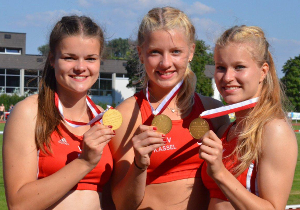 Für das Highlight aus hessischer Sicht bei den deutschen Jugend-Mehrkampfmeisterschaften U18/U16 in Lage (Nordrhein-Westfalen) sorgte das Team des LAV Kassel in der weiblichen U18. Die Siebenkampf-Fünfte, Carolin Friedrich (4.965), sowie Leonie Frank (4.872) und Paula Rücker (4.658) stellten mit 14.495 Punkten einen neuen Landesrekord auf und verwiesen den SV Halle (13.872) und den SV Sonsbeck (13.811) mit deutlichem Abstand auf die weiteren Plätze. Der LAV steigerte sich im Vergleich zu den hessischen Mehrkampfmeisterschaften in Kassel vor wenigen Wochen um 68 Punkte; schon die 14.427 Zähler von Carolin Friedrich, Leonie Frank und Anne Meister hatten eine neue hessische Bestmarke bedeutet.<ENDE/>