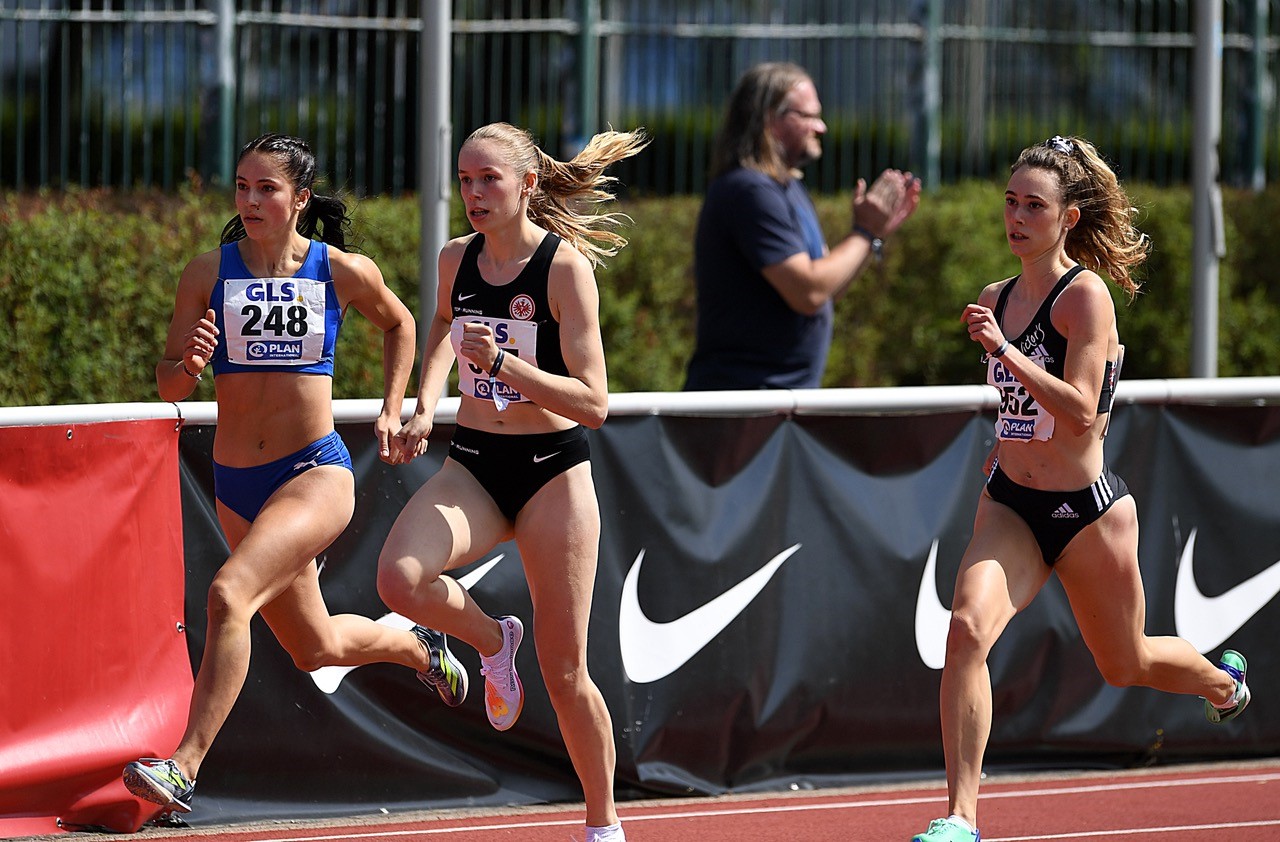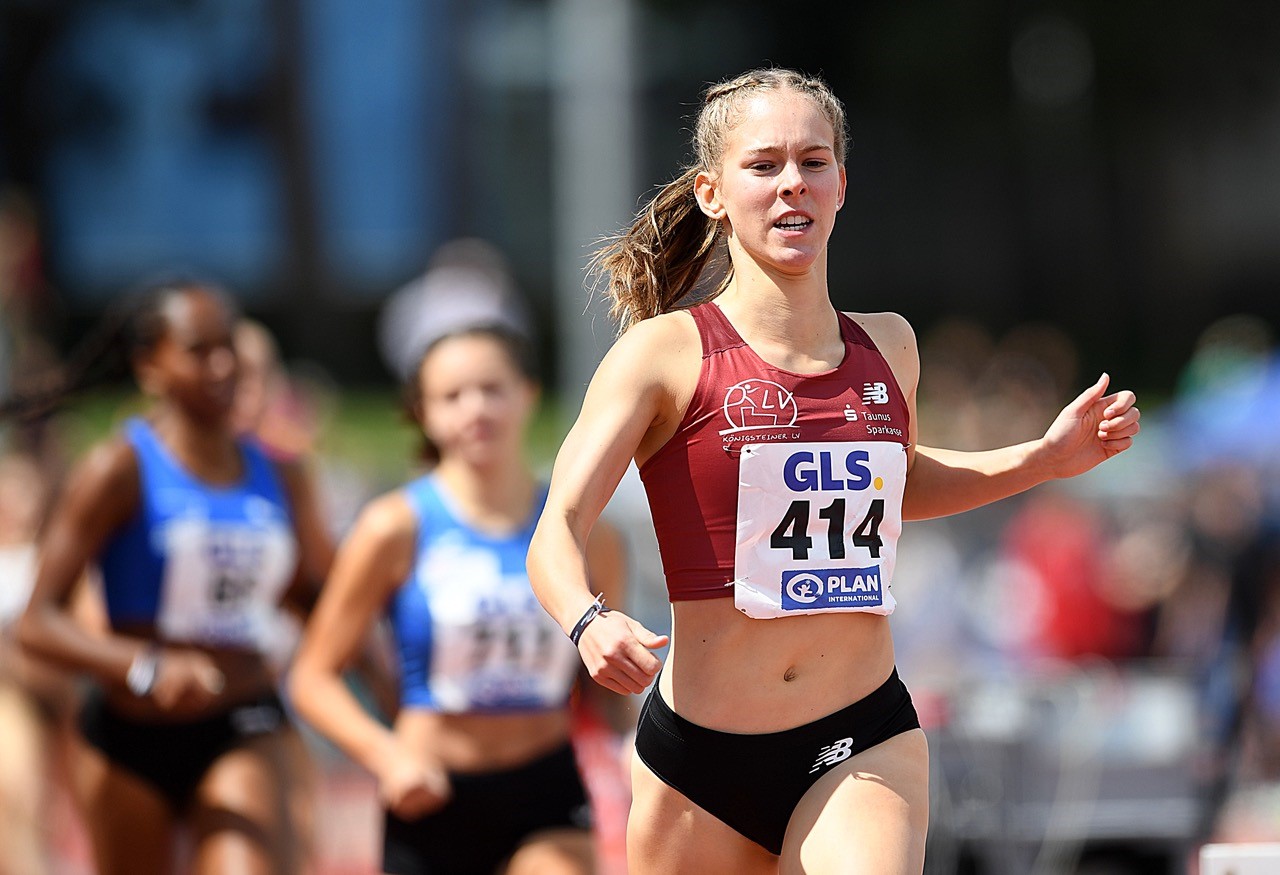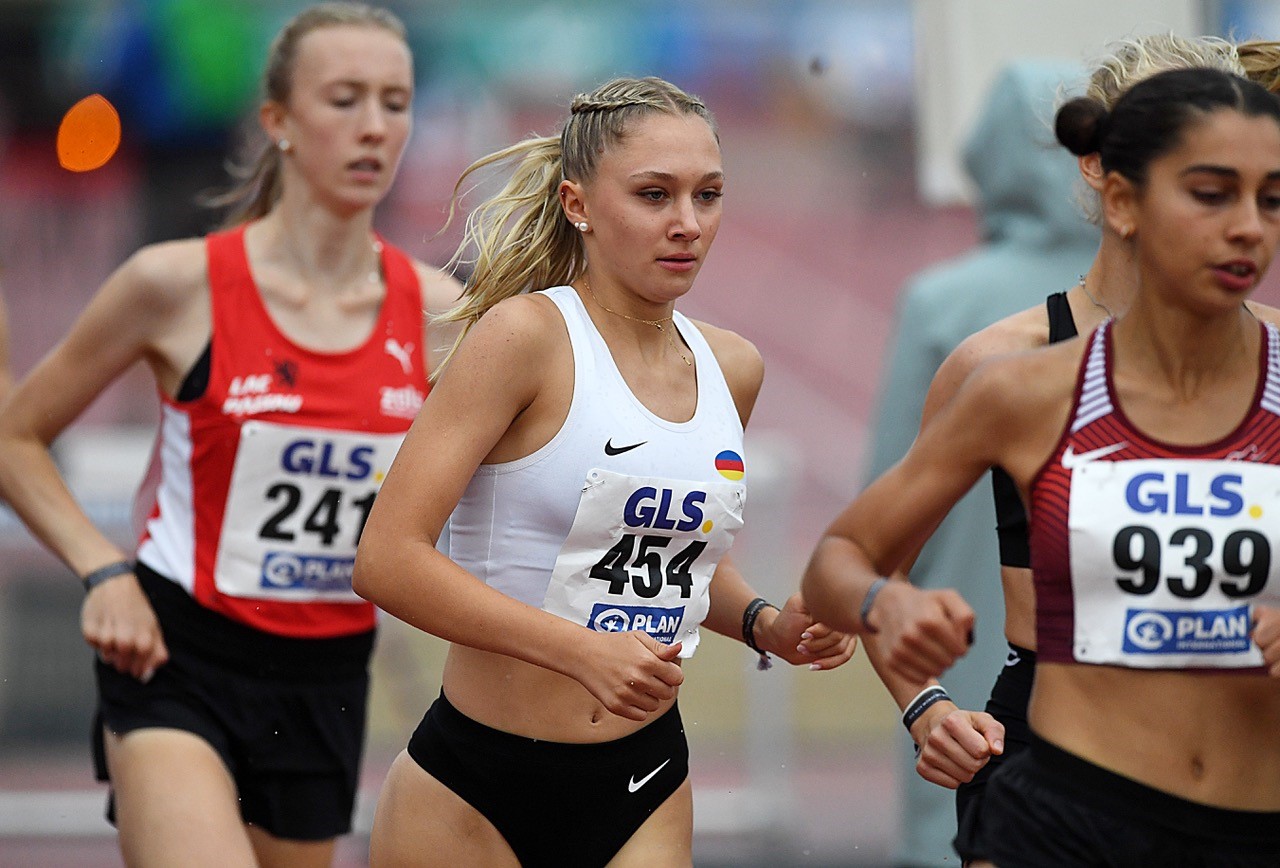 800 Meter: Zwei ganz souveräne Auftritte lieferte Jana Marie Becker ab. Die Mittelstrecklerin im Trikot des Königsteiner LV (noch U18) lief sich in der ersten Runde als Siegerin ihres Rennens mit 2:16,24 Minuten locker „warm“. Im Finale bestimmte die Deutsche Hallenmeisterin von Dortmund dann gegen die ältere U20-Konkurrenz ebenfalls das Geschehen nach Belieben. Becker setzte sich gleich an die Spitze, die komplette Dichte dahinter im Schlapptau. In der letzten Kurve folgte dann eine Beschleunigung mit einem weiteren Antritt auf der Zielgeraden. Diese Beschleunigung reichte, um sich mit 2:07,72 Minuten gegen Hannah Odendahl (LAV Bayer Uerdingen/2:08,94 min.) durchzusetzen.