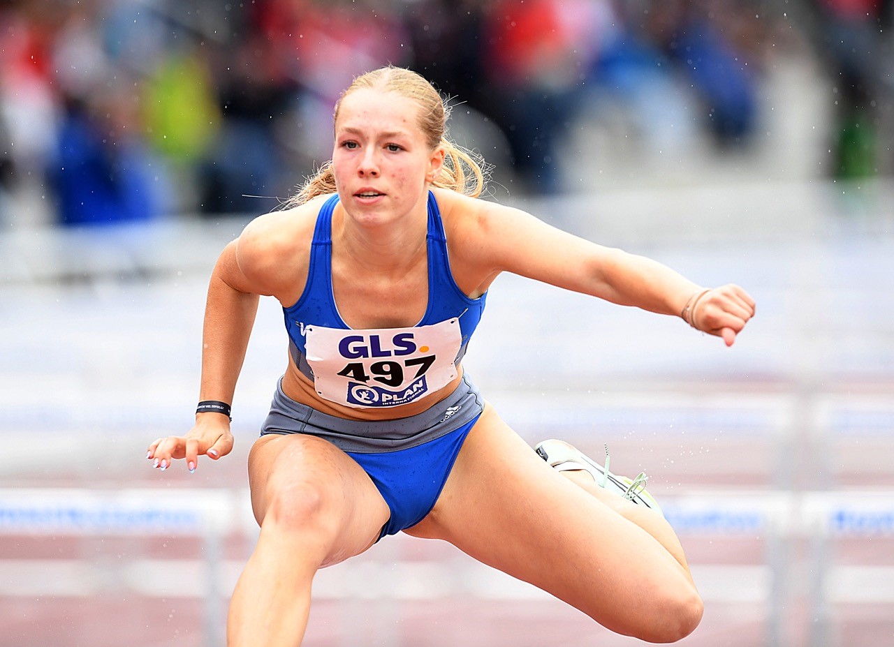 100 Meter Hürden: Wahrscheinlich hatte Mia Haselhorst mit der Finalteilnahme geliebäugelt, stand sie mit 14,09 Sekunden doch auf dem achten Platz der Meldeliste. Nach 14,75 Sekunden (Zweite im letzten Vorlauf) war bei kühlen und regnerischen Bedingungen der Schritt in die nächste Runde auch abgehakt. Im Zwischenlauf, die Rahmenbedingungen hatten sich nicht sonderlich gebessert, wurden dann 14,47 Sekunden gestoppt. Das reichte aber leider nicht, um mit den achten schnellsten Hürdlerinnen nochmals in den Startblock zu gehen. Auch Hannah Bayer (SG DJK Hattersheim) kam ins Semifinale und wurde dort mit 14,63 Sekunden gestoppt. Nur einen Auftritt hatten Louisa Herold (15,22 sec.), Leni Wiegand (beide TV Groß-Gerau/15,43 sec.) und Luise Gosselck (Wiesbadener LV/15,61 sec.).