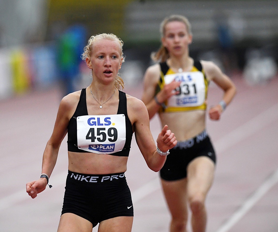 3.000 Meter: Das Rennen war eine beeindruckende Solo-Show von Kira Weis (KSG Gerlingen), die bereits bei der 1.000-Meter-Marke (3:01 min.) an der Spitze war und diese Position kontinuierlich ausbaute. Der Alleingang endete dann nach 9:06,79 Minuten mit dem DM-Titel. Auch zwei Hessinnen mischten vorne mit. Carolina Schäfer (TG Schwalbach) war immer in der ersten Gruppe der Verfolgerinnen präsent und fand sich mit 9:21,25 Minuten (SB) auf dem undankbaren vierten Platz wieder. Der Bronzerang, er ging an Linda Meier (LAC Passau), war mit 9:17,01 Minuten dann aber doch ein ganzes Stück weit entfernt. Vanessa Mikitenko (SSC Hanau Rodenbach) musste in der entscheidenen Endphase ein wenig abreißen lassen und blieb mit 9:32,71 Minuten als Sechste rund fünf Sekunden über ihrer Meldeleistung.