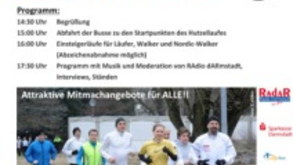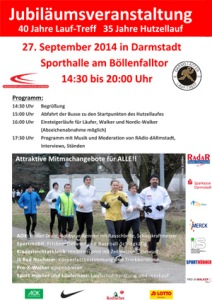 Im Anschluss an den Hutzellauf und die „Einsteigerläufe“ gibt der ehemalige Langstrecken- und Marathonläufer Kurt Stenzel viele Tipps zur Vorbereitung von Läufen und zur Dehnung und Kräftigung im Anschluss. Mit der Ehrung der Lauf-/Walking-Treffs, die seit 1974 bestehen und ihren 40. Geburtstag feiern, endet das Rahmenprogramm der Jubiläumsveranstaltung. Das komplette Programm wird begleitet von Radio Darmstadt (RAdAR)- mit Musik, Moderation und Sportvorführungen.
