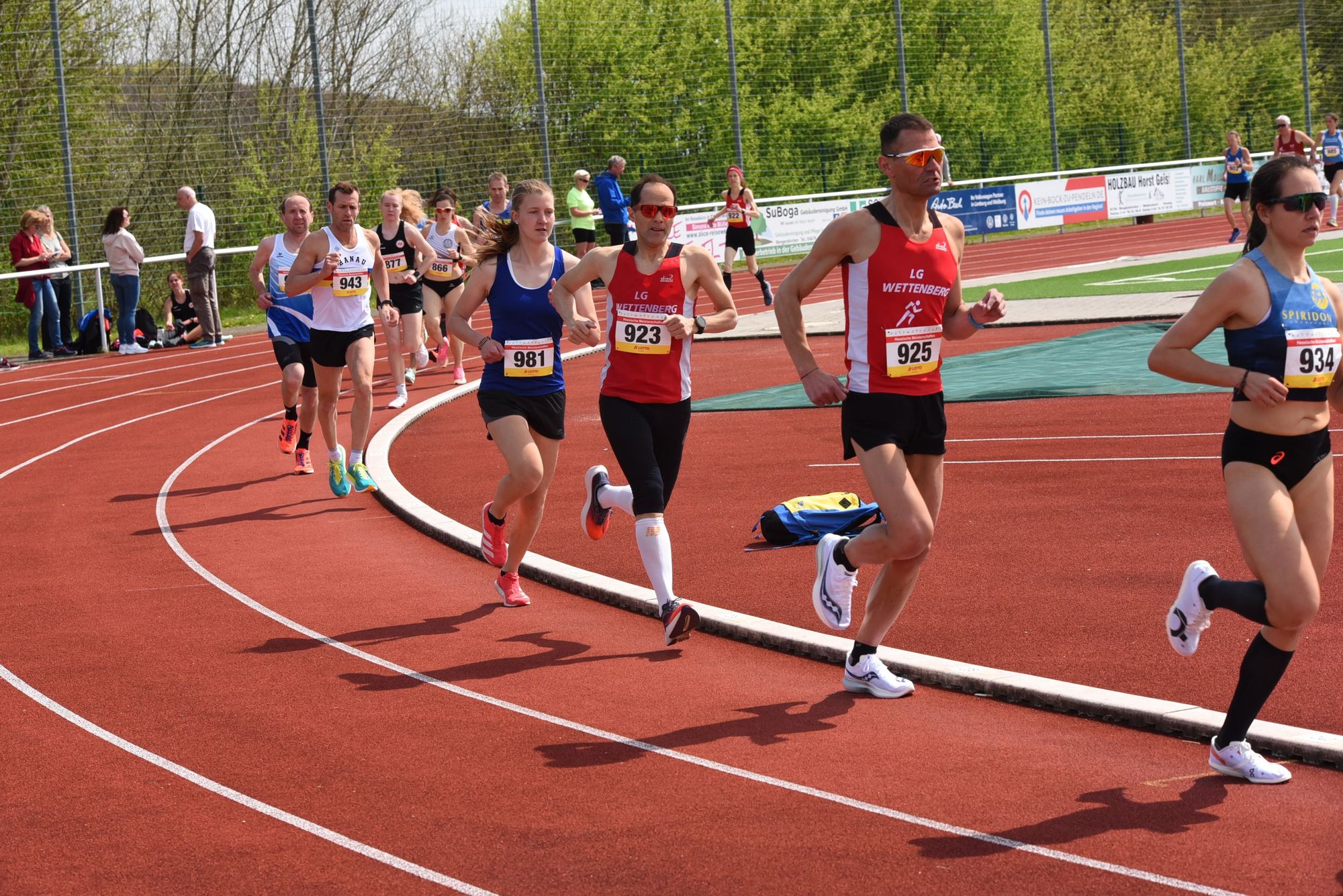 Er kam, lief und siegte! Angelehnt an das Caesar-Zitat „veni, vidi, vici“ (ich kam, ich sah, ich siegte) wurde Marius Abele seiner Favoriten-Rolle über 10.000 Meter bei den hessischen Langstrecken-Meisterschaften in Mengerskirchen vollauf gerecht. Dem Mann vom SSC Hanau-Rodenbach, seine Bestmarke aus dem Vorjahr notiert bei 29:48,99 Minuten, reichten bei der HM 31:33,00 Minuten, um sich den Landesmittel zu holen. Julius Hild machte mit 31:54,54 Minuten den erwarteten SSC-Doppelsieg klar. Das Podium der Top-Drei komplettierte Nils Bergmann (TV Waldstraße Wiesbaden), der mit 32:48,62 Minuten jedoch schon einen etwas größeren Rückstand hatte. An die DM-Norm von 30:40 Minuten kamen alle drei Läufer nicht ran. Im Altersklassenbereich gaben Thomas Micha (LG Eder/M35) mit 32;19,42 Minuten, Marc Feussner (ASC Breidenbach/M40) in 35:20,78 Minuten sowie Silvio Welkner (LG Wettenberg/M45) mit 35:22,73 Minuten kräftig Gas.