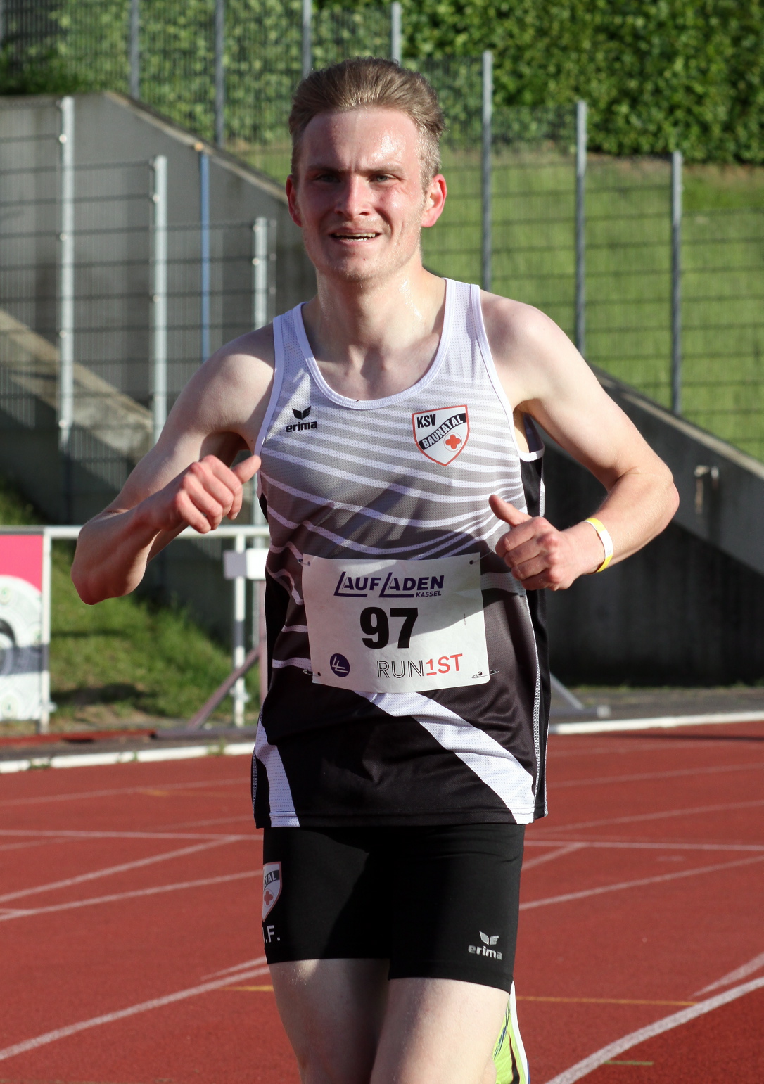 Um über 40 Sekunden auf 8:59,97 steigerte sich Nick Frölich (KSV Baunatal/MJU 20) nach bester Tempoarbeit von Hannes Dieterich (Laufteam Kassel) im Rahmen-Wettbewerb 3000 Meter und unterbot dabei erstmals die Neun-Minuten-Grenze. Nach 12:22,50 ist Gereon Bode (KSV) jetzt Vierter der M 65 im DLV.