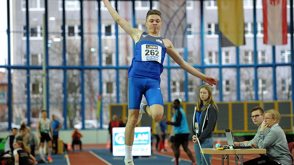 Das war nichts für schwache Nerven. Oliver Koletzko (Wiesbadener LV) sorgte bei den deutschen Jugend-Hallen-Meisterschaften in Neubrandenburg für einen echten Weitsprungkrimi. Der Auftakt für den Favoriten aus dem Taunus war optimal. Mit starken 7,40 Metern gleich im ersten Durchgang ging der WLVler in Führung. Das sollte dann auch bis zur vierten Runde so bleiben, ehe Simon Batz (LG Landkreis Kehlheim) zum Konter ansetzte und mit 7,49 Metern Koletzko von der Spitze des Feldes verdrängte. Oliver steigerte sich zwar auf 7,45 Meter, was aber nicht für einen erneuten Führungswechsel reichte. Nachdem der letzte Sprung von Batz bei 7,08 Metern gemessen wurde, hatte Koletzko das Privileg als Führender des Vorkampfes mit seinem sechsten Sprung den Wettbewerb zu beenden. Der Kaderathlet nutzte die finale Chance, flog angefeuert vom Publikum auf hervorragende 7,53 Meter, drehte damit den Wettbewerb noch um und holte sich den Titel. Damit wurde Koletzko, er gehört noch der jüngeren B-Jugend (also U18) an, seiner Favoritenrolle gerecht. Bis dato standen für ihn 7,47 Meter auf der Habenseite, die er am zweiten Februar-Wochenende bei Gewinn des süddeutschen Titels markiert hatte.