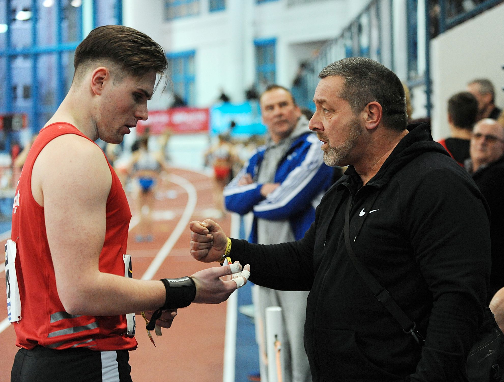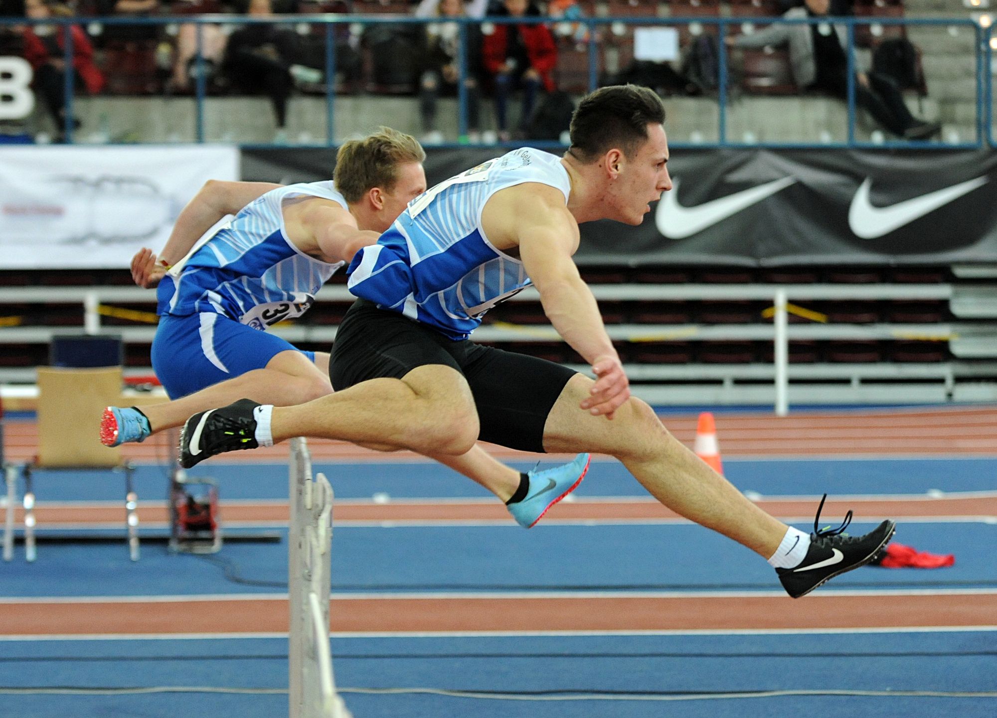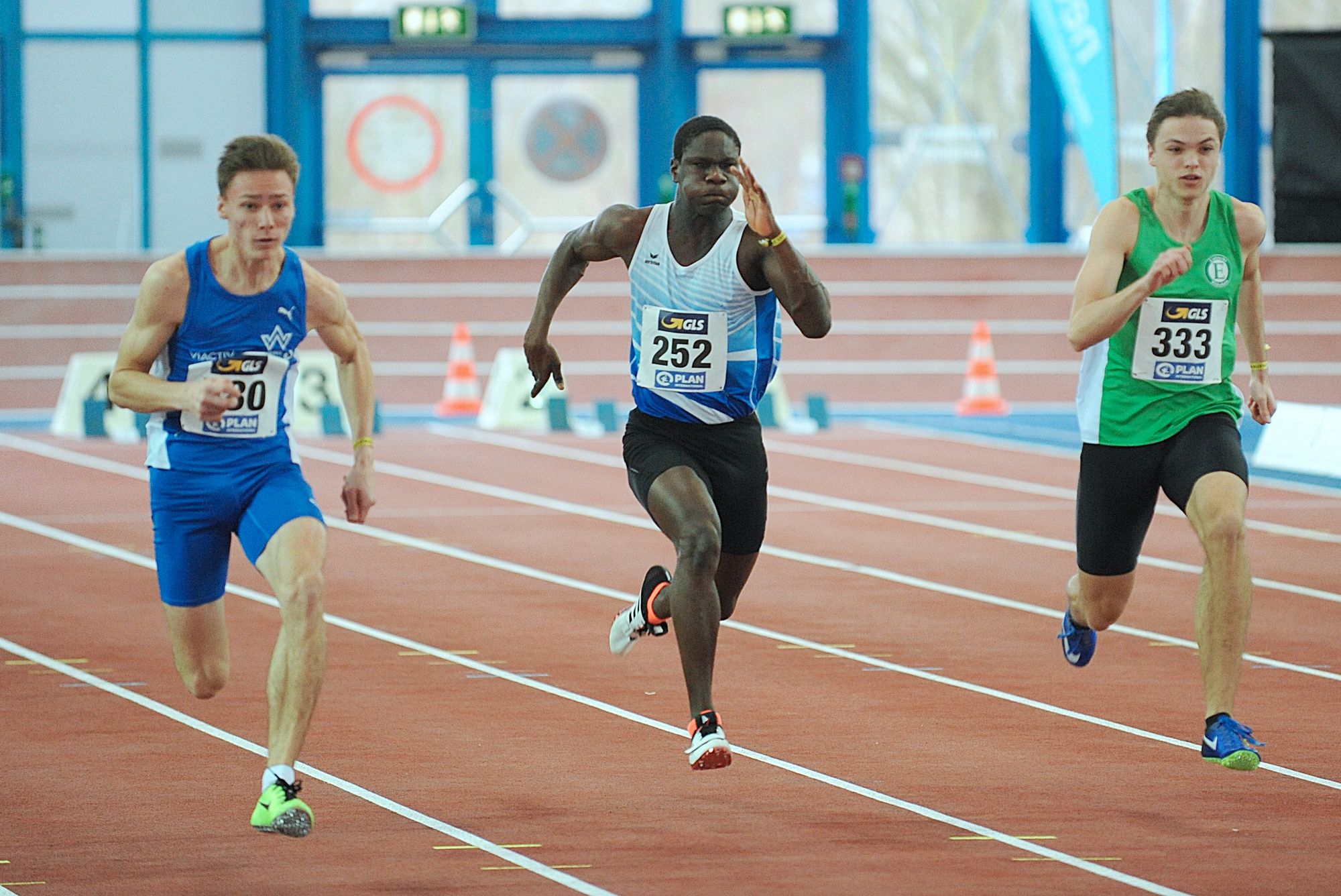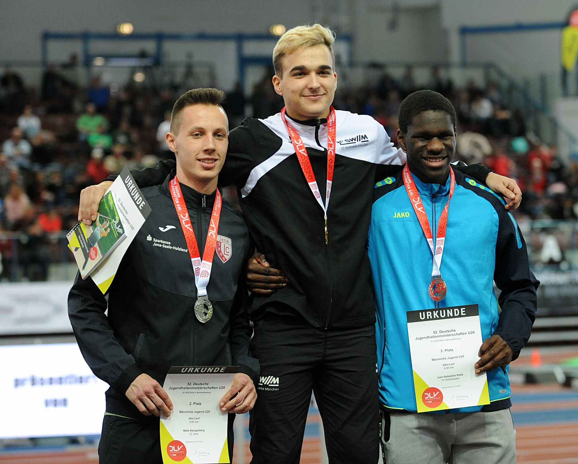 Im Weitsprung war auch noch Juan-Sebastian Kleta (TV Gelnhausen) im Einsatz, dem nach einem Satz auf 7,24 Meter (4.) lediglich sieben Zentimeter zu Bronze fehlten. Das begehrte Edelmetall holte sich Kleta über 60 Meter. Nach 6,97 Sekunden in der ersten Runde steigerte sich Juan-Sebastian im Zwischenlauf auf 6,89 Sekunden, um in Finale in 6,86 Sekunden auf den Bronzerang zu stürmen. Vereinskollege Lukas Boeddinghaus beendete seinen Vorauf über 200 Meter in 22,58 Sekunden und hatte auch noch einen Auftritt über 60 Meter Hürden (8,68 sec.). Für Moritz Mainka (Wiesbadener LV) war das Hürden-Finale Pflicht. Das klappte nach 8,04 Sekunden (VL) auch problemlos. Der Endlauf war dann eine ziemlich enge Angelegenheit, trennten hier doch lediglich 0,04 Sekunden die Athleten auf den Plätzen zwei bis fünf. Mainka war am Ende über seine 7,99 Sekunden als Fünfter enttäuscht, hatte er bei den „Hessischen“ doch schon 7,93 Sekunden abgeliefert. In den Endlauf wollte auch Aaron Giurgian laufen. Der U18er vom ASC Darmstadt (bisher 8,04 sec.) schied nach 8,15 Sekunden jedoch vorzeitig aus. Nicht weiter kam auch Mittelstreckler Okai Charles (Königsteiner LV). Der U18er entscheid sich für die 400 Meter, blieb am Start ein wenig „sitzen“. Nach 50,34 Sekunden fehlten am Ende 0,23 Sekunden fürs B-Fnale. Über 800 Meter kam Robin Pfahls (TV Gelnhausen) in den Endlauf und bestätigte hier als Siebter in 1:57,56 Minuten seine Zeit aus der ersten Runde (1:57,30 min.). Ebenfalls einen siebten Platz erlief sich in einem von Taktik geprägten 1500-Meter-Rennen Christoph Schrick (ASC Darmstadt) in 4:11,66 Minuten. Bastian Mrochen (LG Reinhardswald)konnte über 3000 Meter nach 8:46,43 Minuten als Sechster wieder durchschnaufen.