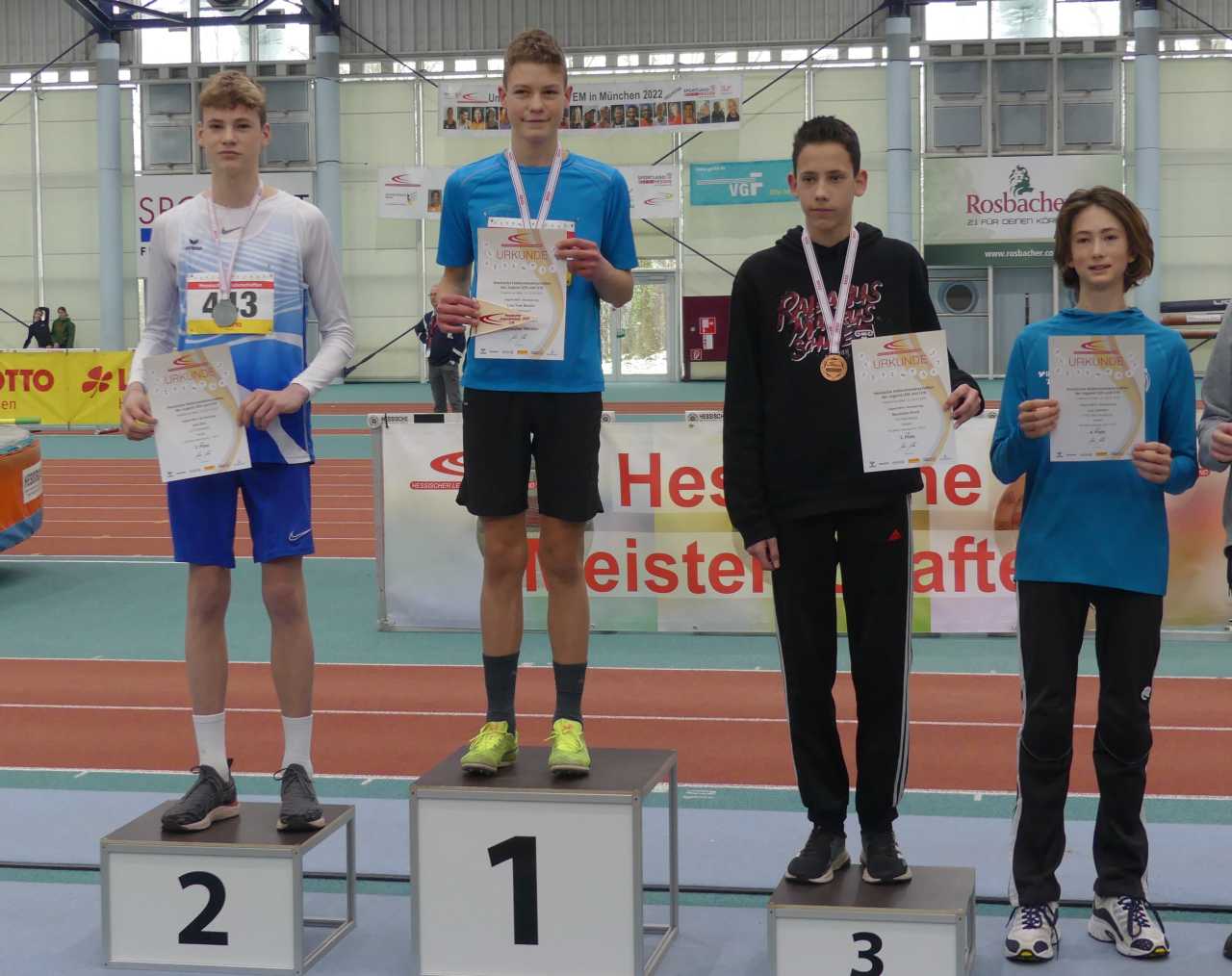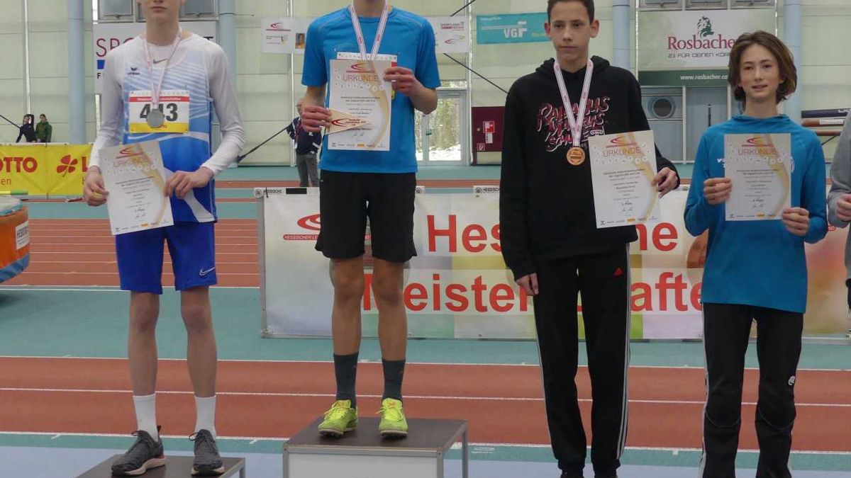 Noch weitere Male kamen die Odenwälder auf dem eher undankbaren vierten Rang ein, zeigten dabei jedoch starke Leistungen: Tim Mehm (Erbach) im Hochsprung der U20 mit 1,84m, Patrick Lorenz (Bad König) im 60m-Hürdenlauf der U20 mit 8,93 Sekunden und Victor Vogt (Bad König) im Speerwurf der U18 mit 38,18m. Vogt kam zudem im Diskuswurf mit 32,27m auf Platz 5. Neuling Emilian Seyl (Erbach) gefiel mit Platz 5 über 60m Hürden in 10,18 Sekunden. Jana Grulich hatte Pech im Weitsprung; bei keinem der ersten drei Versuche konnte sie ihr Leistungsvermögen abrufen und schied als neunte mit 4,51m im Vorkampf aus; zwei Zentimeter mehr hätten zur Endkampfteilnahme gereicht.