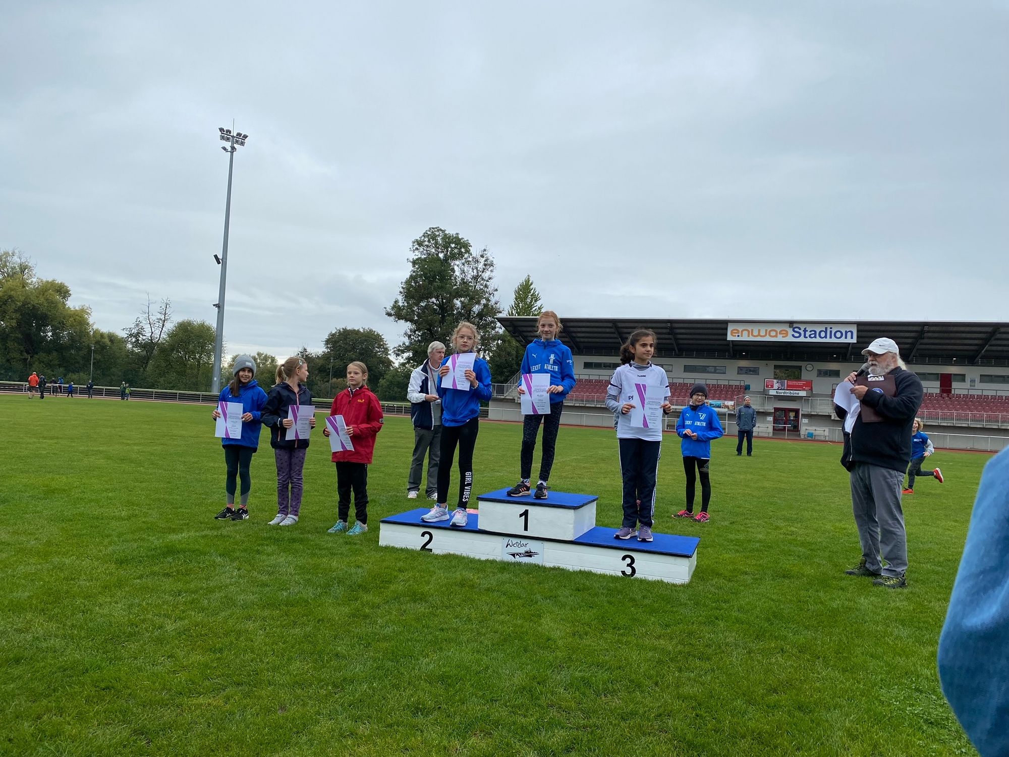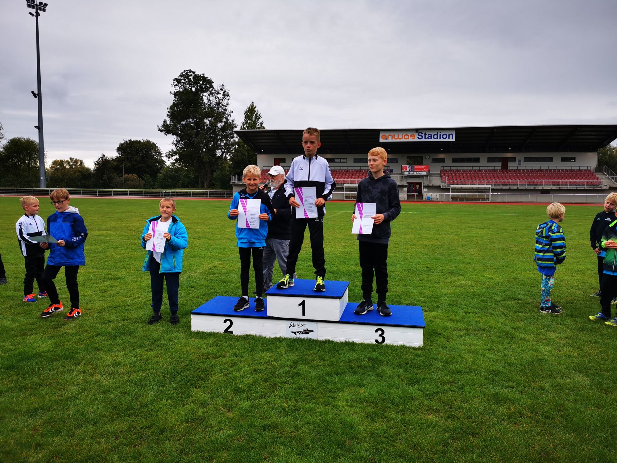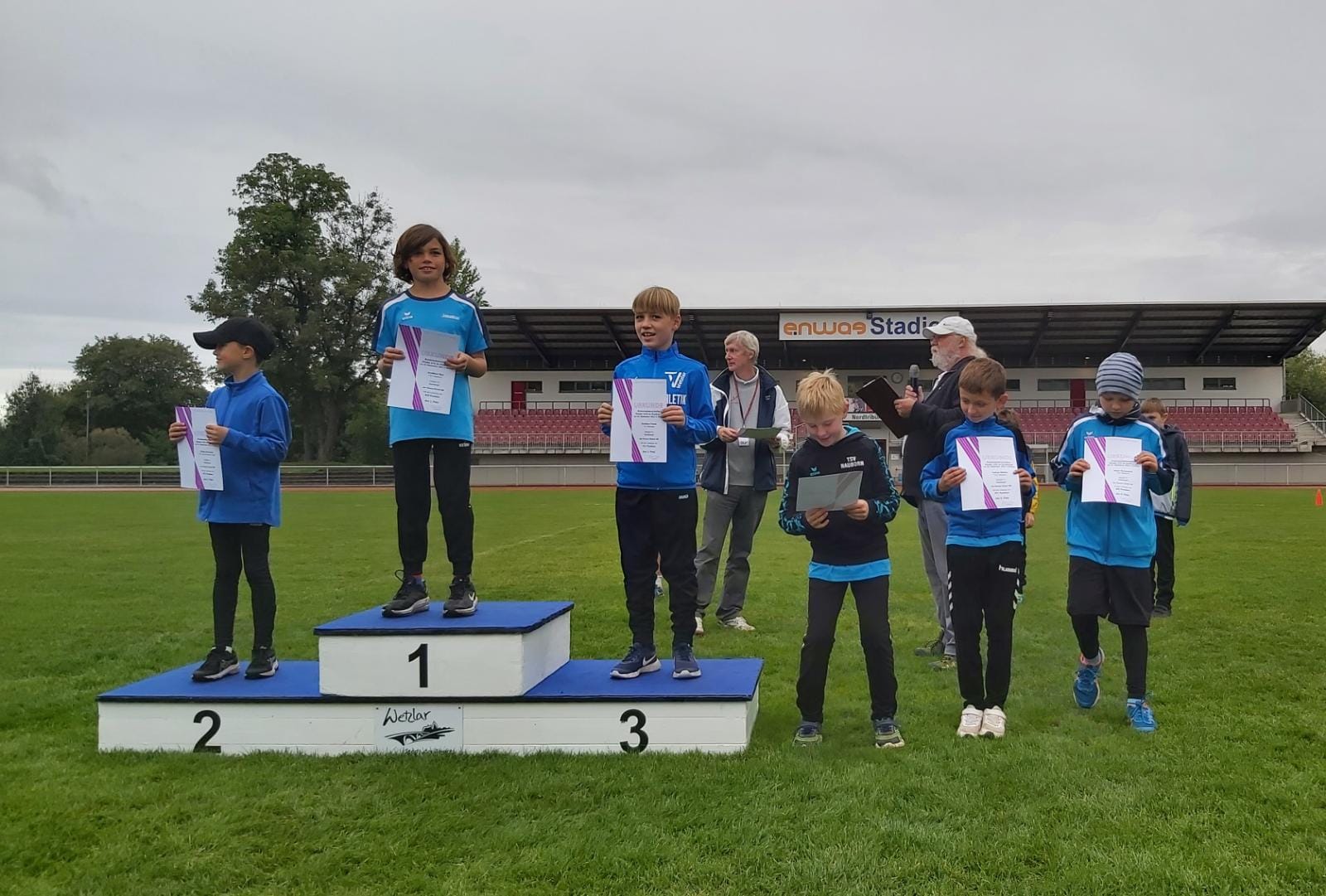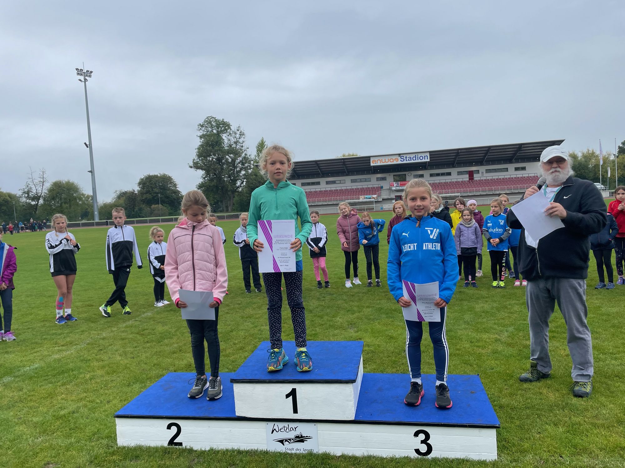 Wetzlar (mls). Jahreszeitengemäß finden in der Leichtathletik, abgesehen von einigen Meetings und Waldläufen, allmählich die letzten Wettkämpfe der Saison statt. Am letzten Septembersonntag hatten die Kinder der U12 und U10 im Leichtathletikkreis Wetzlar nochmal die Möglichkeit, bei nassem Wetter im enwag-Stadion im Dreikampf die neuen Kreismeister auszuloten.
