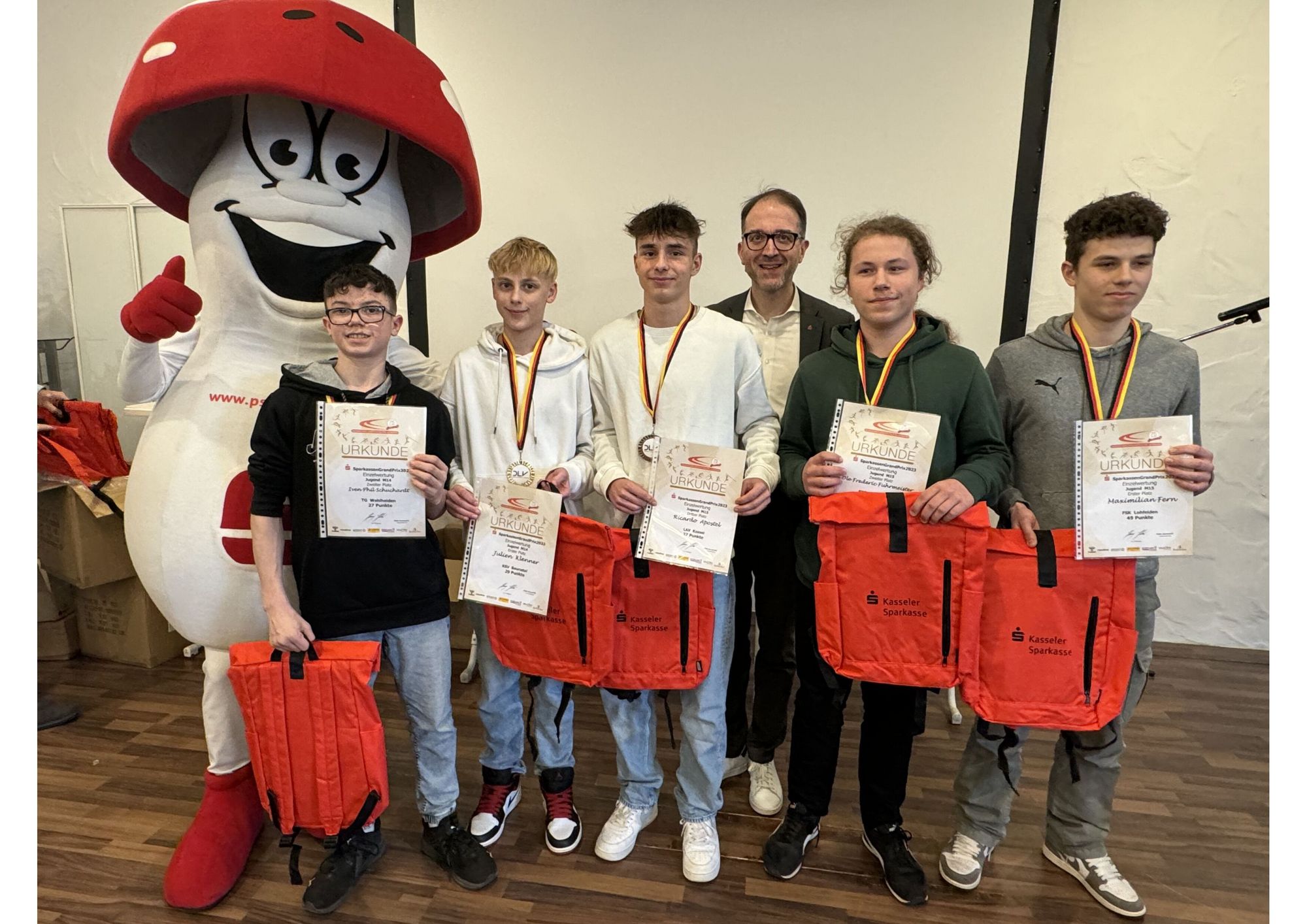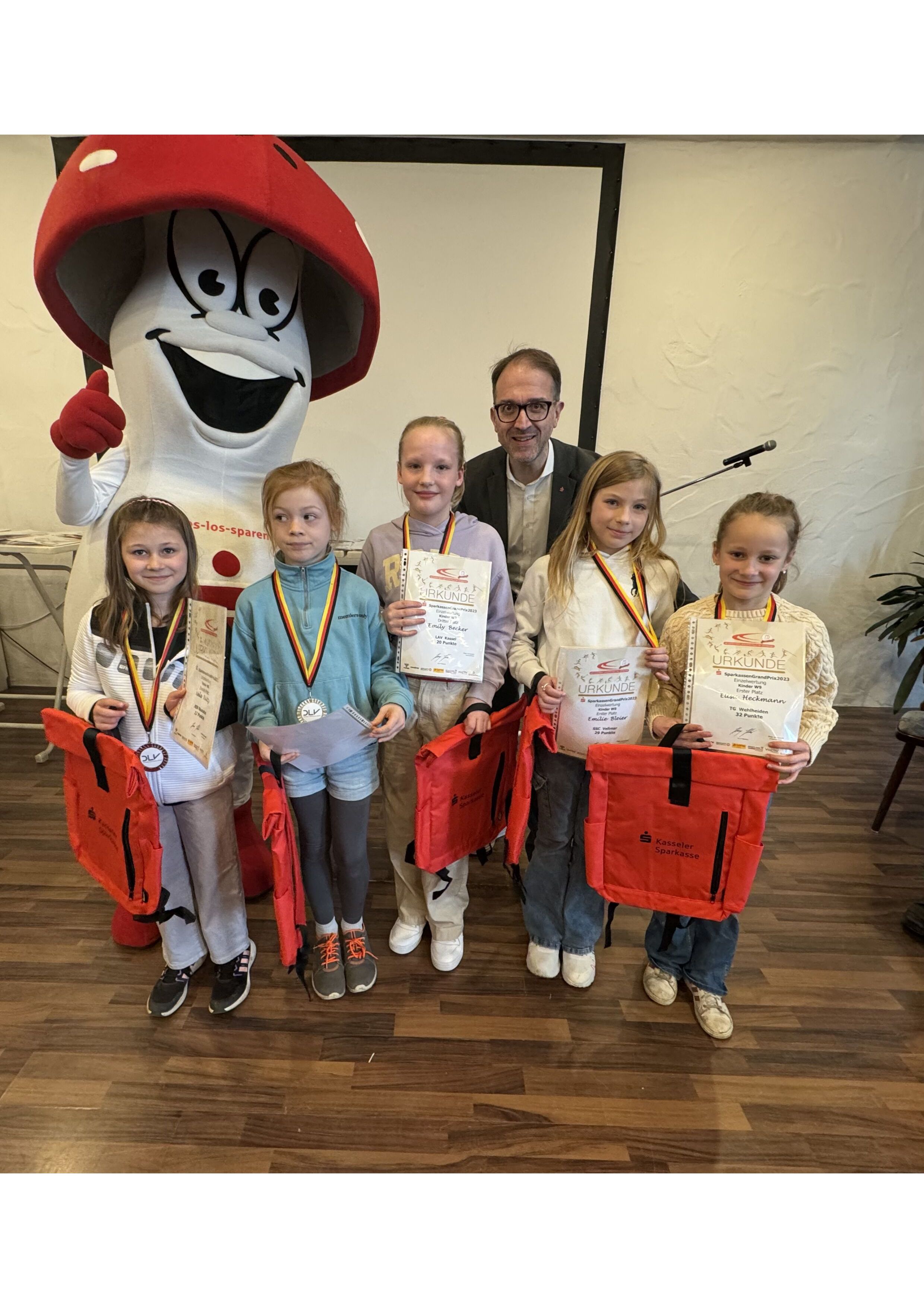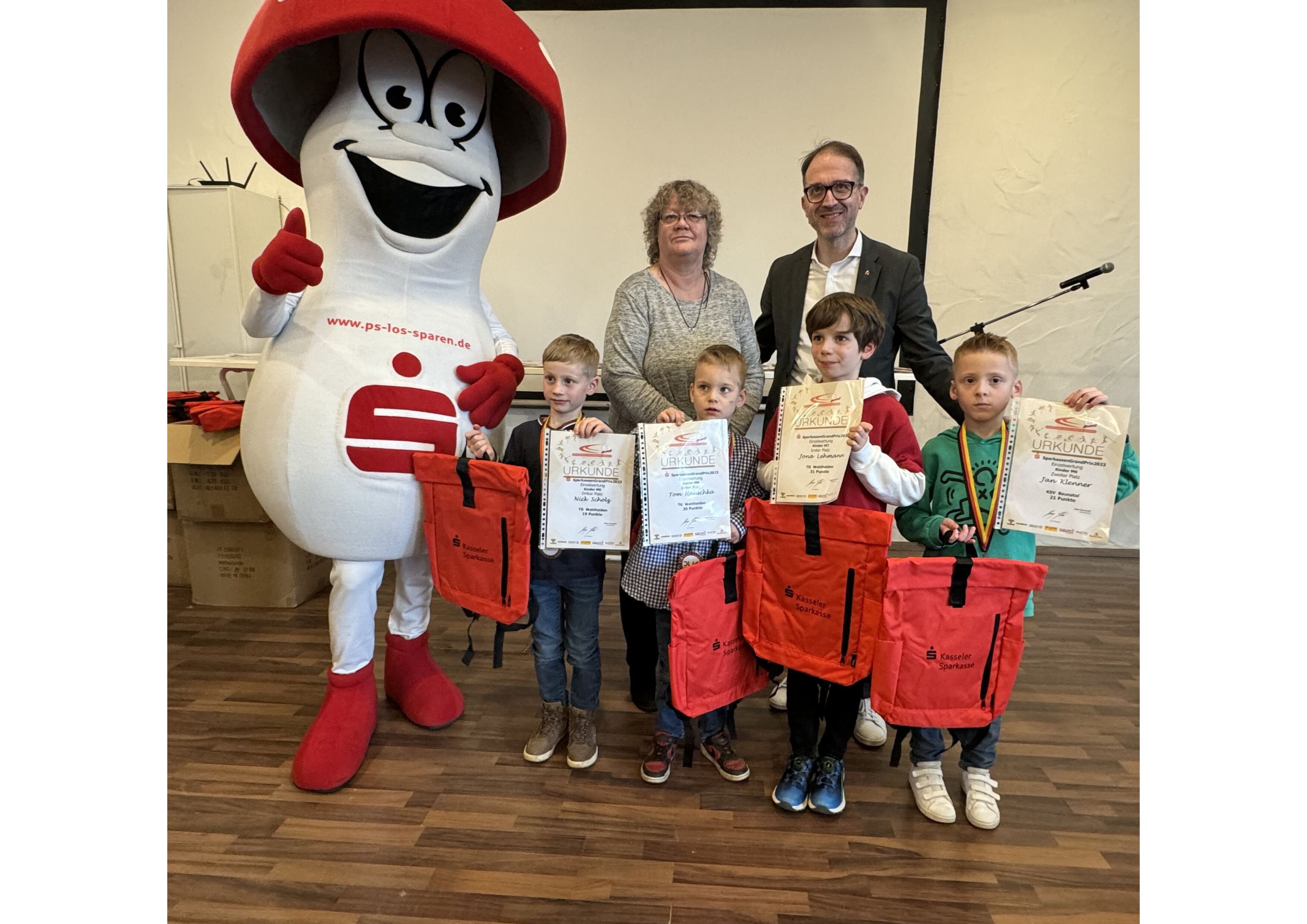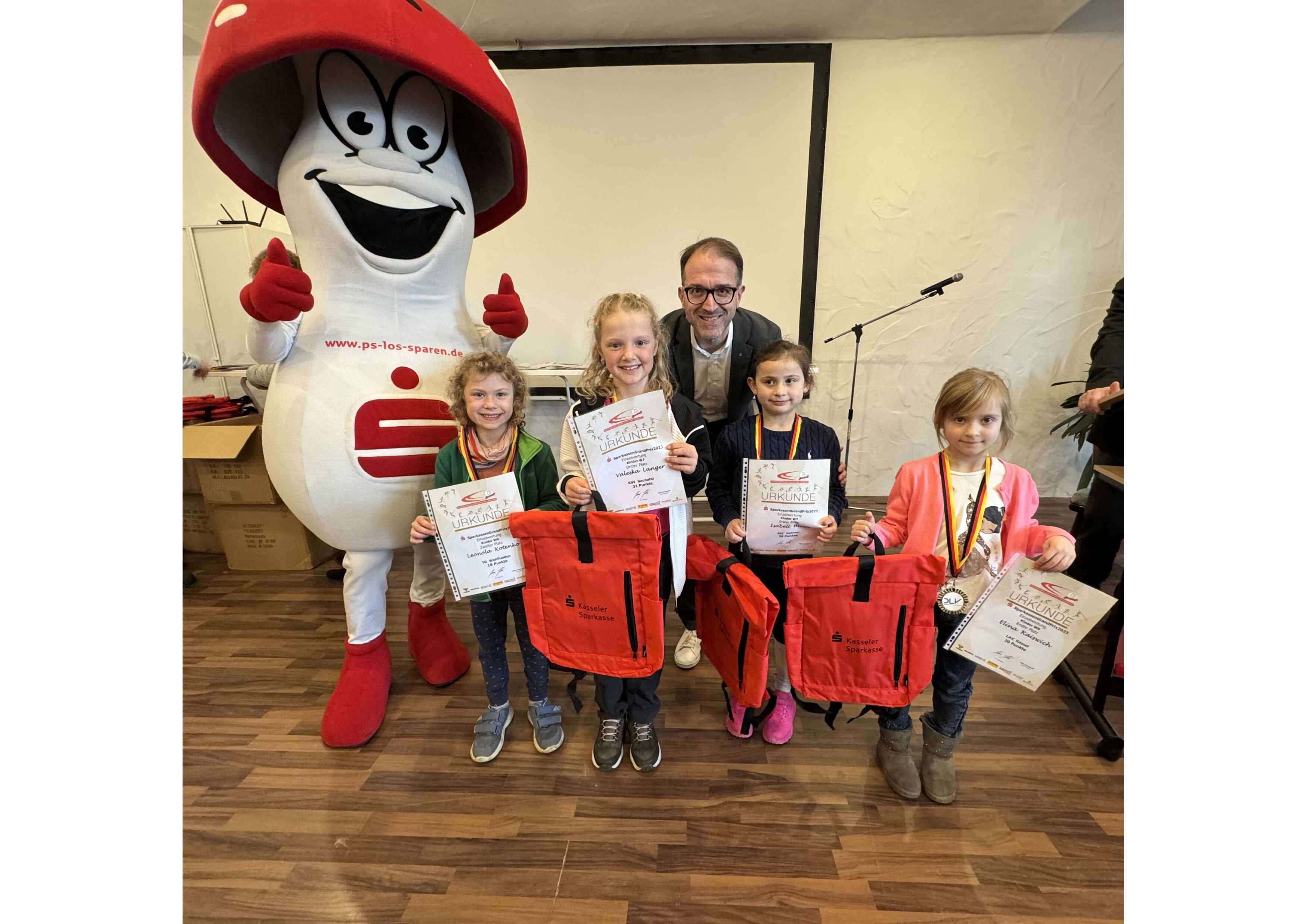 Von der Kasseler Sparkasse waren anwesend: Cjhristina Hackenberg als Nachfolgerin von Herrn Heß und Marcel König (stellv REgionalleiter West), der mit Freude den Geehrten die Medaillen umhing.
