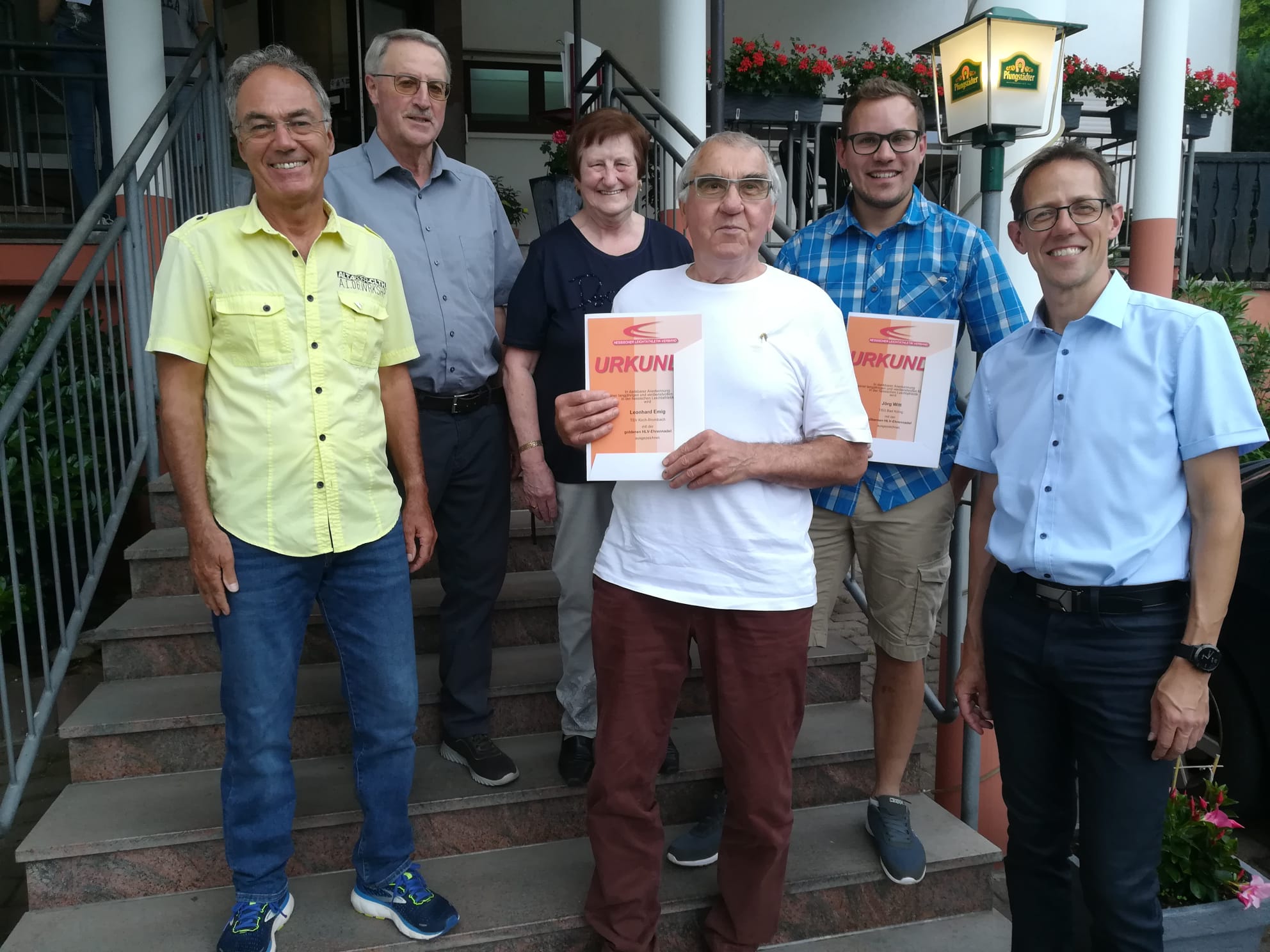 Um den Sportlern diese Erfolge zu ermöglichen, ist gute Vereinsarbeit Voraussetzung. Das machte die Ehren-Vizepräsidentin des Hessischen Leichtathletikverbandes, Margret Lehnert in ihren Grußworten deutlich. „Vereine vermitteln den Kindern und Jugendlichen Zusammengehörigkeits-gefühl, stärken deren soziale Fähigkeiten und das Selbstbewusstsein. Dazu sind die Vereine und Verbände auf die ehrenamtliche Tätigkeit von Trainern und Funktionären angewiesen“. Für ihr langjähriges Engagement zeichnete sie Herbert Siefert (SC Beerfelden) und Jörg Witt (TSG Bad König) mit der Silbernen Ehrennadel des HLV aus. Die höchste Anerkennung des HLV, in Form der Goldenen Ehrennadel, wurde Leonhard Emig vom TSV Kirch-Brombach überreicht.