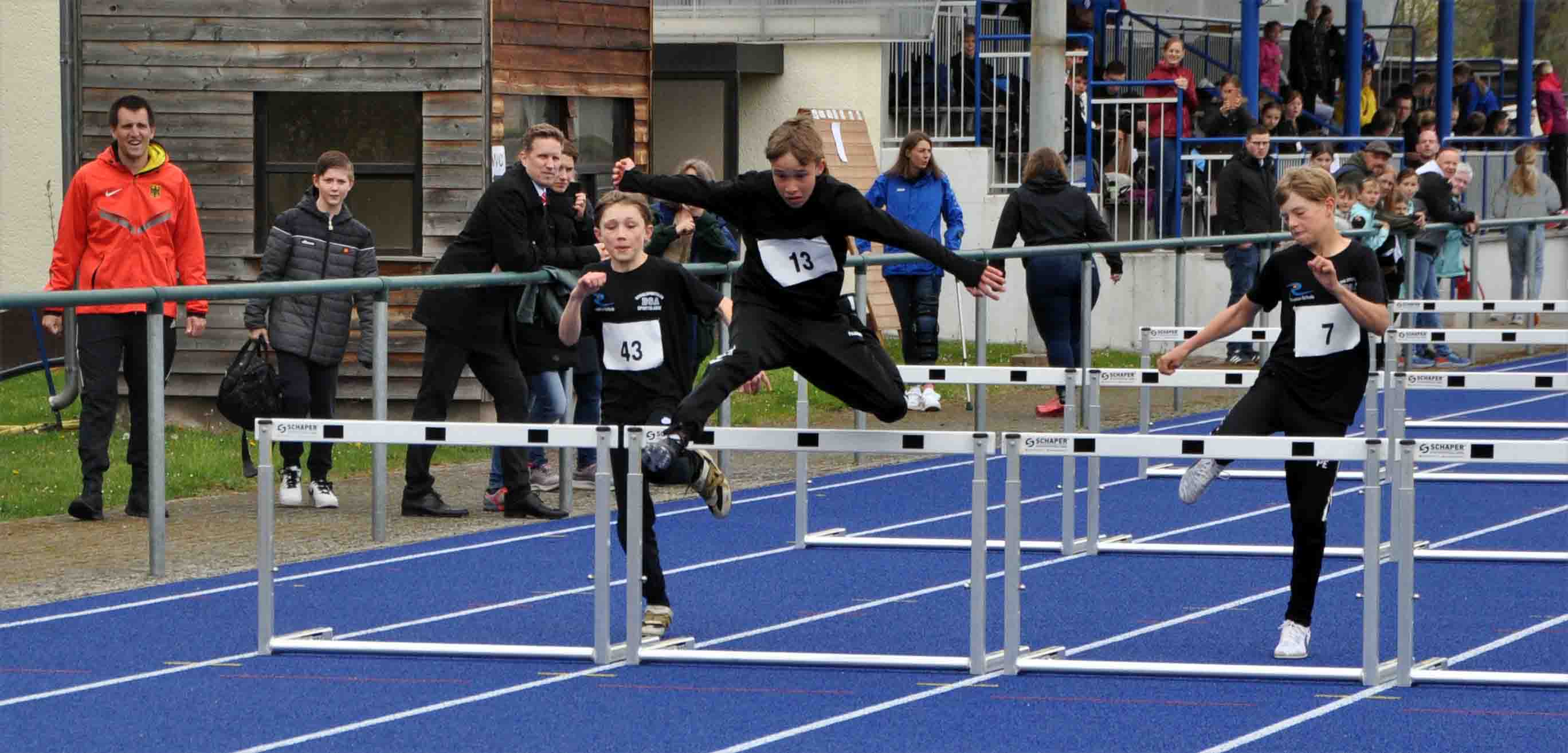 Lia Schäfer, Ski-Club Meißner, W10, Svea Lang, TV O, W12, Anna Buchenau, Eschweger TSV (ETSV), W13 sowie Felix Vierbach, TV O, M13 waren mit je drei Titeln am erfolgreichsten. Jette Thenert, TV O, ging zwar sogar viermal an den Start, mögliche Konkurrentinnen stellten sich ihr jedoch nicht bzw. nicht in ausreichender Anzahl, so dass sie ohne Meistertitel blieb. Lia hingegen konnte die Zuschauer mit einem "Spurt" über die letzten 120 m ihres 800m-Laufes beeindrucken. Svea hatte mit acht Gegnerinnen das größte Teilnehmerinnenfeld des Tages über die 75 m zu besiegen. Dabei blieb sie mit ihrer Zeit von 11,28 sec. nur sieben Hundertstel hinter der Siegeszeit der älteren Anna zurück. Felix hielt seine bis zu fünf Wettkampfteilnehmer auf Distanz. Mit 11,45 sec. über 75 m lag er jedoch deutlich hinter den gleichaltrigen Mädchen zurück. Dafür war er mit 2:49,15 min über 800 m schneller als Anna mit ihrer Zeit von 2:52,23 min.