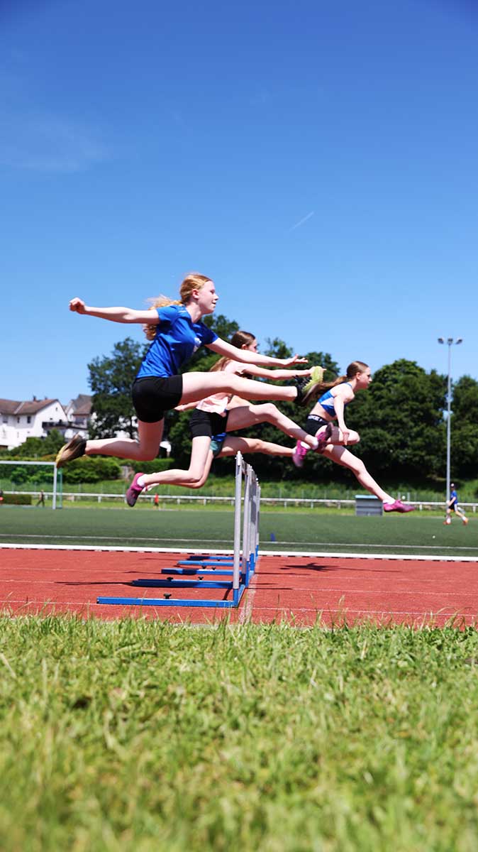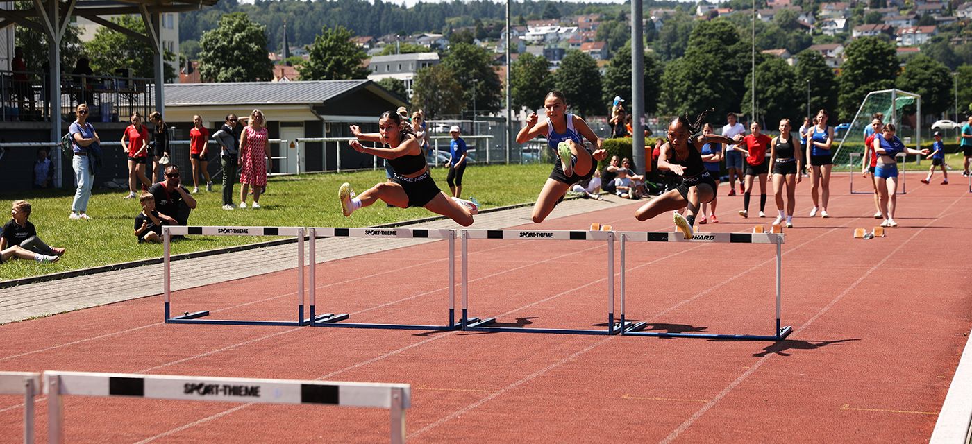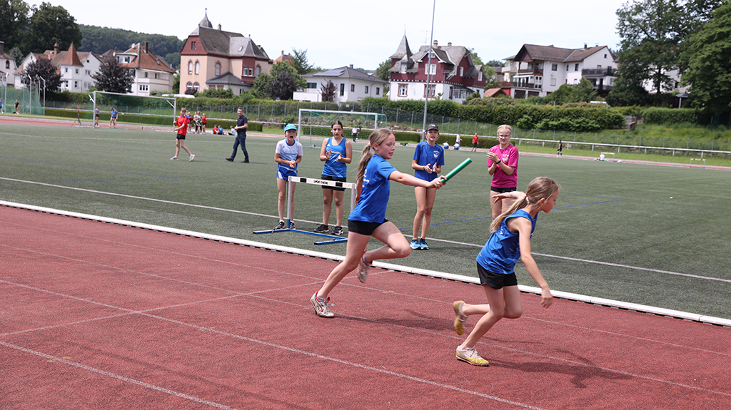 Kopf-an-Kopf-Rennen gab es bei den Staffelläufen in den weiblichen Altersklassen der U12 und der U14, wo jeweils das Team der TSG Bad König knapp vor der Konkurrenz des TSV Erbach durchs Ziel lief.