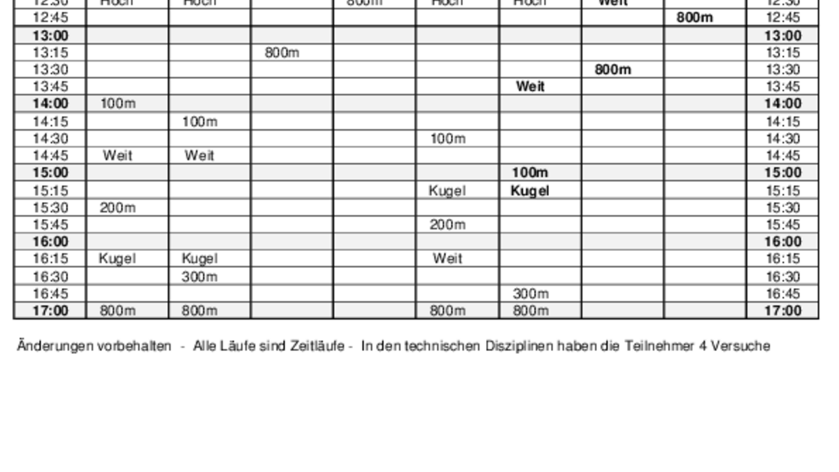 Wir haben einen vorläufigen Zeitplan erstellt, den wir Euch angehängt gerne zukommen lassen. Je nach Meldeergebnis, passen wir ihn an.