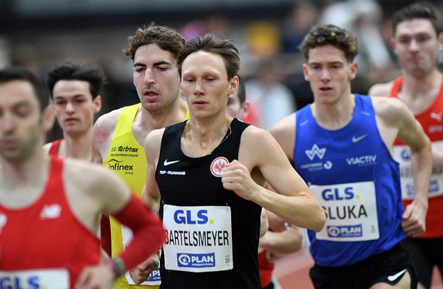 1500 Meter: Drei Hessen standen über die klassische Mittelstrecke in der Meldeliste. Nach den beiden Rennen gab es Grund zum Jubeln, denn das Trio ist im Finale erneut am Start. Amos Bartelsmeyer (Eintracht Frankfurt), der frisch gebackene „Rekordhalter“ über die Meile, unterstrich in einem taktisch gestalteten Rennen als Sieger (3:47,05 min.) seine Favoritenrolle. Auch Marc Tortell (Athletics Team Karben) hatte als Fünfter mit 3:48,28 Minuten keine Probleme mit dem direkten Finaleinzug. Im nächsten Lauf schnürte Sven Wagner (Königsteiner LV) seine Spikes. Der U23er machte als Zweiter (3:48,12 min.) hinter Maximilian Feist (TV Wattenscheid) alles klar, der mit 3:48,11 Minuten lediglich einen Wimpernschlag schneller unterwegs war. Den letzten Platz über die Zeitregel sicherte sich Lukas Abele (SSC Hanau-Rodenbach/3:48,91 min.), der bis zur 1200-Meter-Marke die Führungsarbeit leistete und letztendlich dafür auch belohnt wurde.