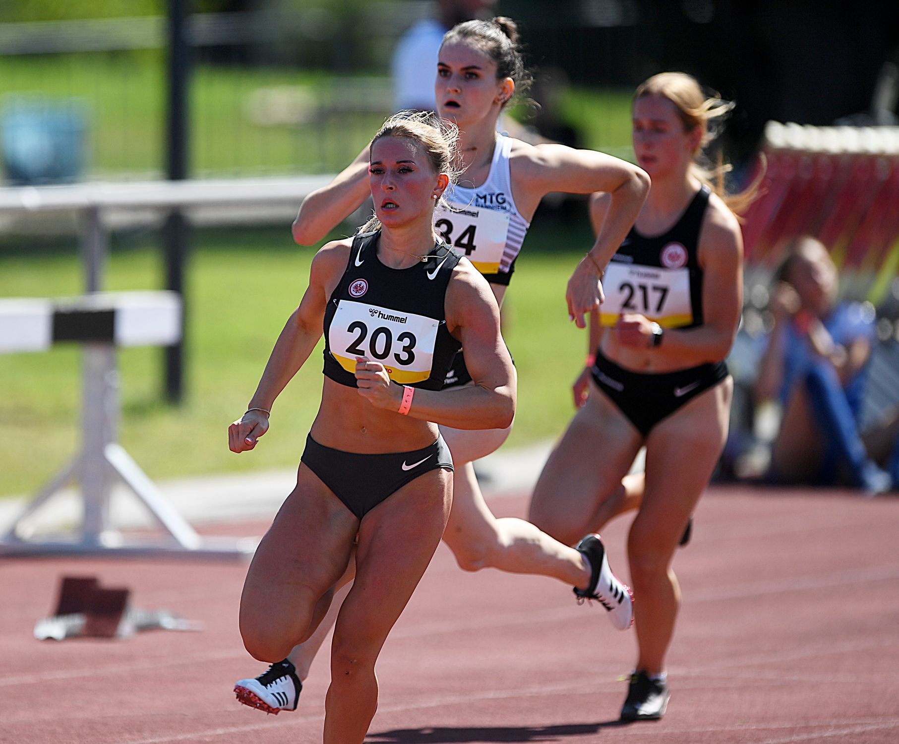 400 Meter: Einen „Heimsieg“ zeigte hier Langsprinterin Anna-Maria Hofmann (Eintracht Ffm.) mit 54,91 Sekunden. Ihre Vereinskollegin Elena Tresser überquerte in 58,27 Sekunden als Vierte die Ziellinie und musste mit einem Rückstand von 0,34 Sekunden Luisa Herrfurth (SG Walldorf Astoria) die Bronzemedaille überlassen.