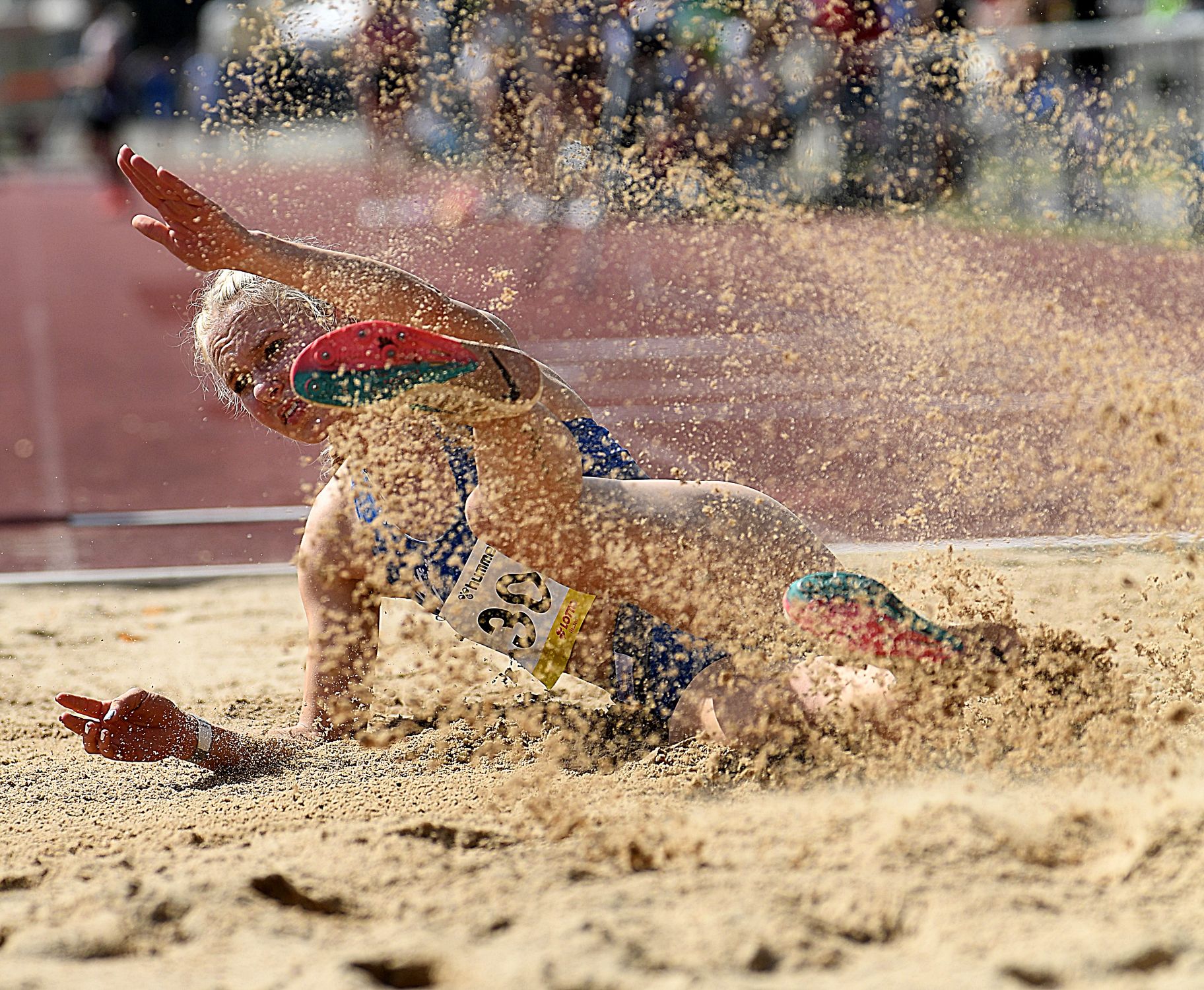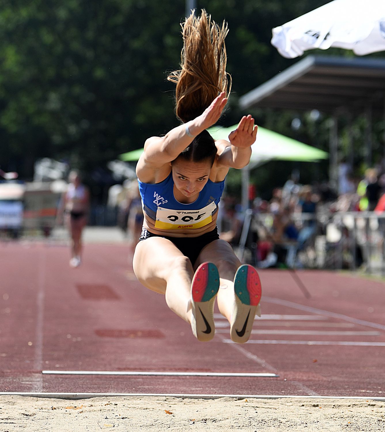 Weitsprung: Fest in hessischer Hand war die Weitenjagd. Favoritin Viktoria Koletzko (Wiesbadener LV) hatte mit ihrem ersten Sprung 5,75 Meter vorgelegt. Diese Weite hatte bis zum vierten Durchgang Bestand, dann sprang Team-Kollegin Malin Stavenow mit 5,80 Metern an die Spitze und setzte mit 5,96 Metern in der nächsten Runde sogar noch einen drauf. Viktoria verbesserte sich noch auf 5,83 Meter, konnte damit die Reihenfolge aber nicht mehr drehen. Helena Brich (LG Seligenstadt) wurde mit 5,76 Metern Dritte. Der fünfte Platz ging an Sophie Ullrich (WLV/5,65 m).