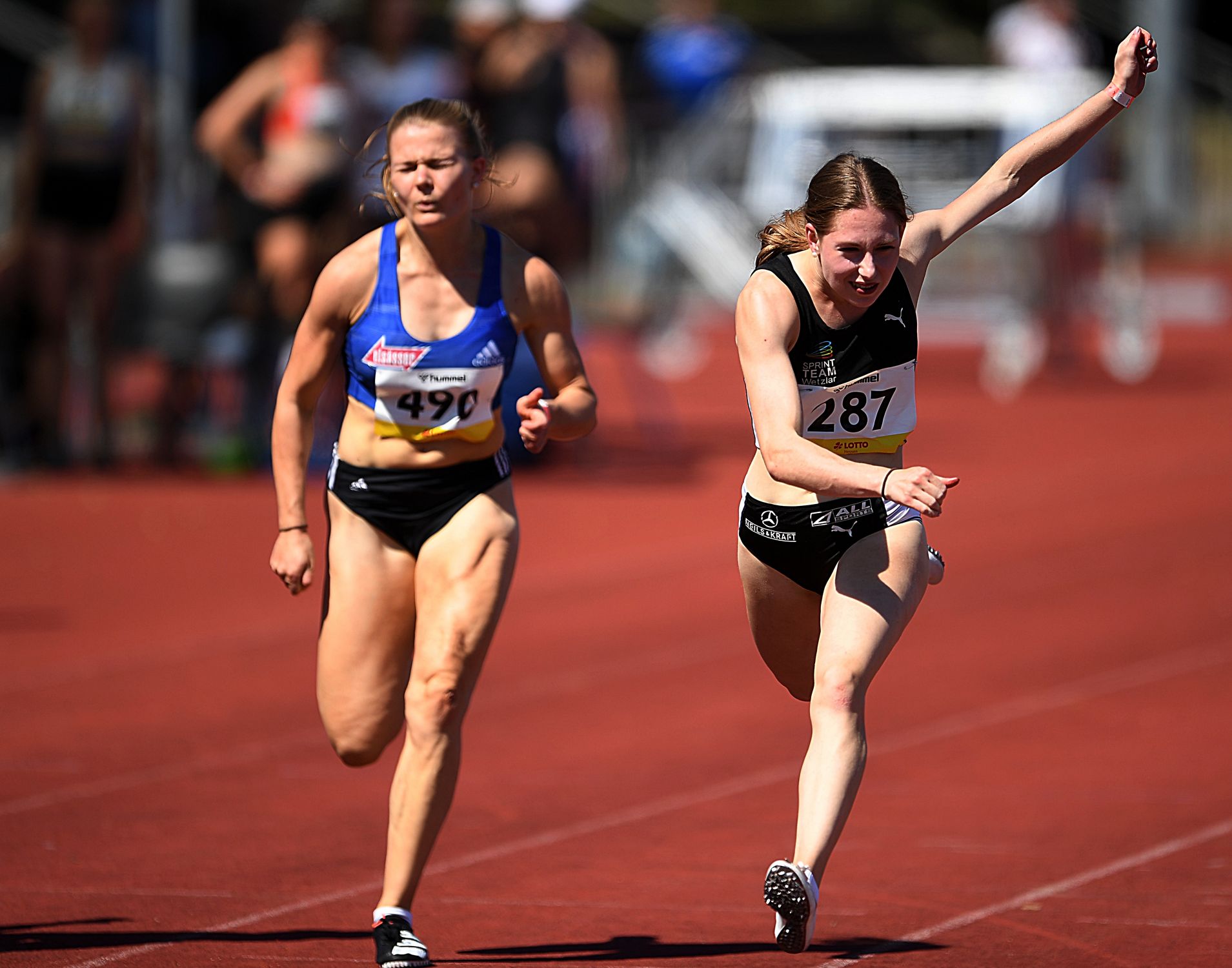 200 Meter: Siegerin Elisa Lechleitner (LAZ Ludwigsburg/24,49 sec.) wurde von zwei Hessinnen gejagt, aber nicht überholt. Antonia Unger (TV Wetzlar/noch U20), sonst oft über die Langhürden unterwegs, wurde Zweite (24,86 sec.). Alisha Zwergel (Eintracht Ffm.) komplettierte nach 25,12 Sekunden das Podium. 5. Tara Heurung (LG Bad Soden-Sulzbach-Neuenhain/25,99 sec.), 6. Kyra Engel (LG Langgöns-Oberkleen/26,33 sec.), 8. Estelle Hode (LG OVAG Friedberg-Fauerbach/26,43 sec.).