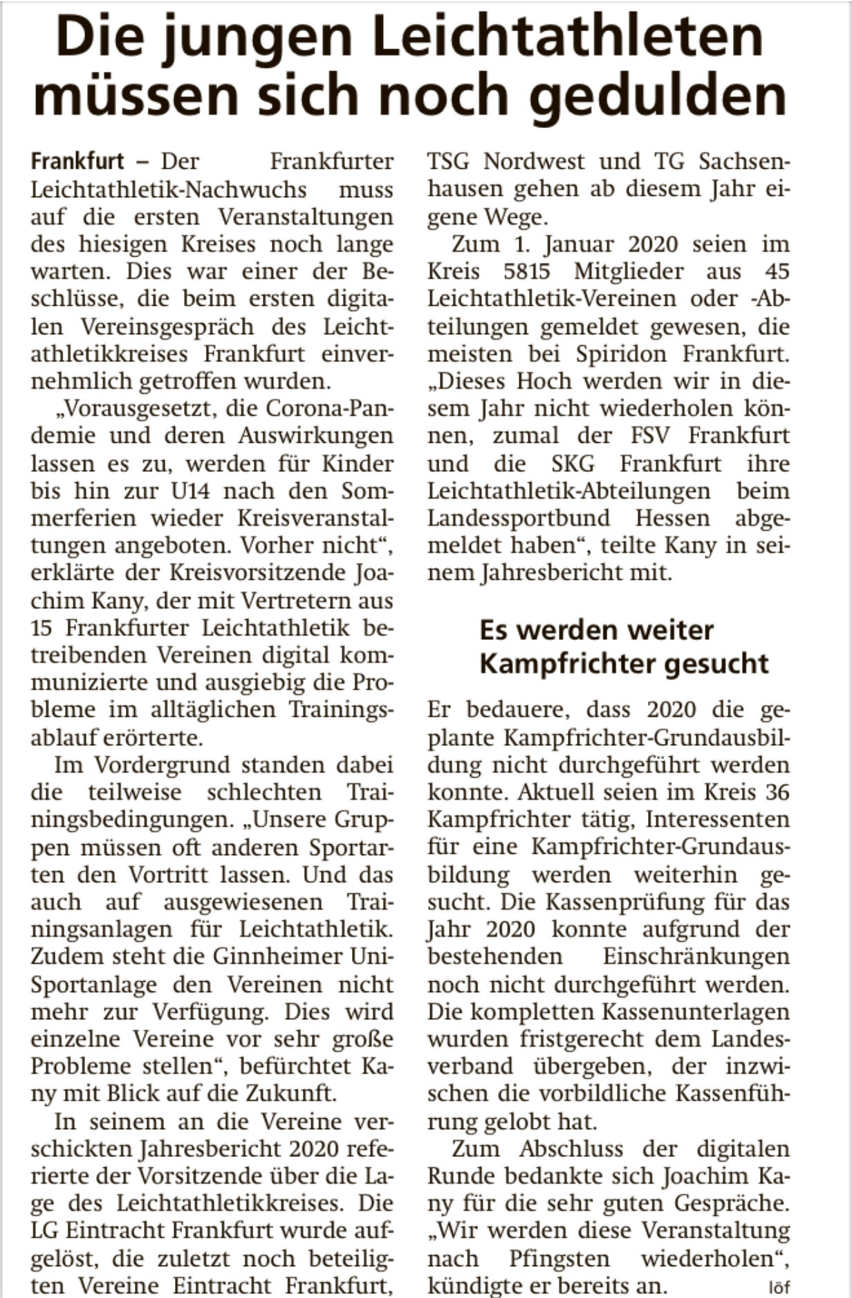 FNP: Die jungen Leichtathleten müssen sich noch gedulden