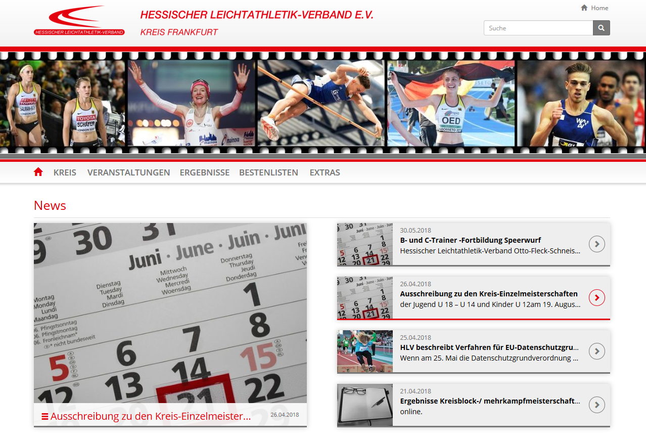 Nachdem zu Beginn des Jahres der HLV mit seiner neuen Homepage an den Start gegangen ist, geht nun der erste Kreis diesen Schritt. Seit heute ist die Seite des Leichtathletikkreises Frankfurt im neuen Gewand online.