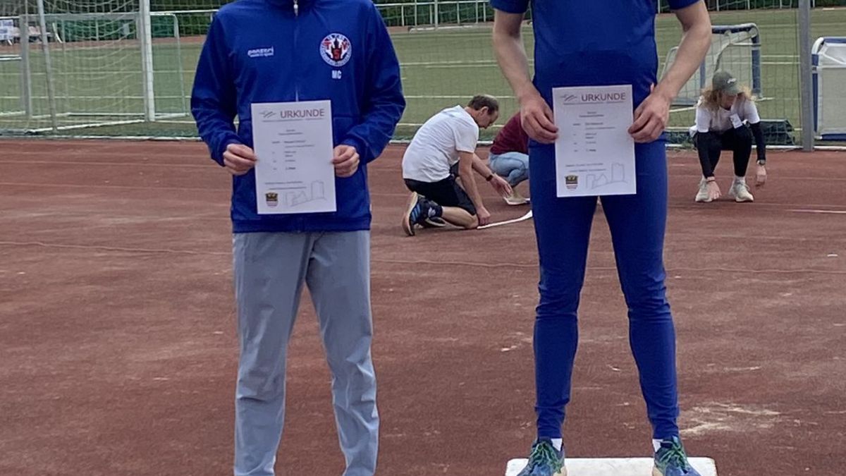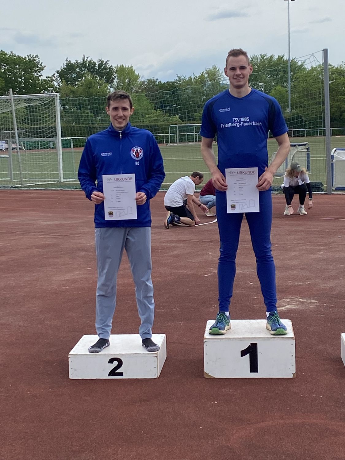 Dazwischen liegt nur die Altersklasse M15, in der Aaron Capitain vom LSC Bad Nauheim (insgesamt acht Bestleistungen) vorne lag – allerdings langsamer war als die M14-Kontrahenten Julius Behr und der nur knapp geschlagene Keanu Liam Ludwig vom TV Echzell (2:18,34 zu 2:18,68 min). Ludwig wurde ebenso im Diskuswurf knapp geschlagen (30 Zentimeter hinter Fauerbachs Matthias Brumnic/Siegwurf im sechsten Versuch), setzte sich aber dafür im Weitsprung um fünf Zentimeter gegen Altenstadts Adrian Fliedner durch, der das Sprint-Triple (100/300/80 m Hürden) geholt hatte. Dabei blieb er über 100 Meter nur neun Hundertstelsekunden über dem 23 Jahre alten Kreisrekord. In der M15 gingen drei Einzelsiege an Fliedners Vereinskollegen Lenny Luca Frank, der über 3000 Meter schnellster Läufer aller Altersklassen und Kreise war.