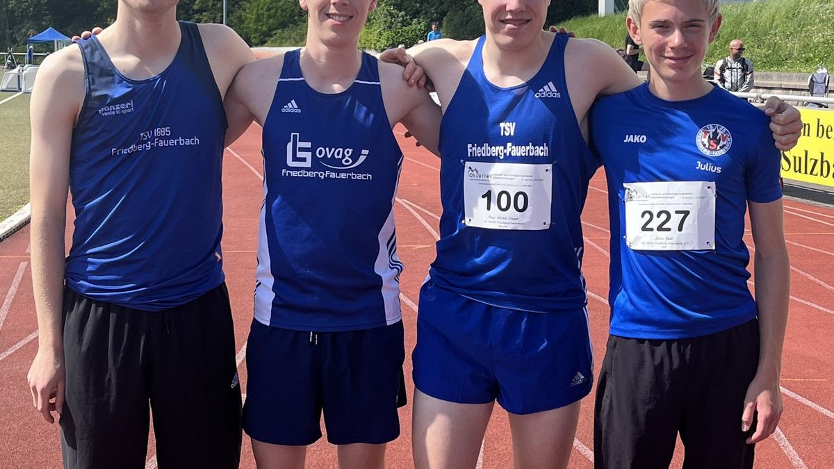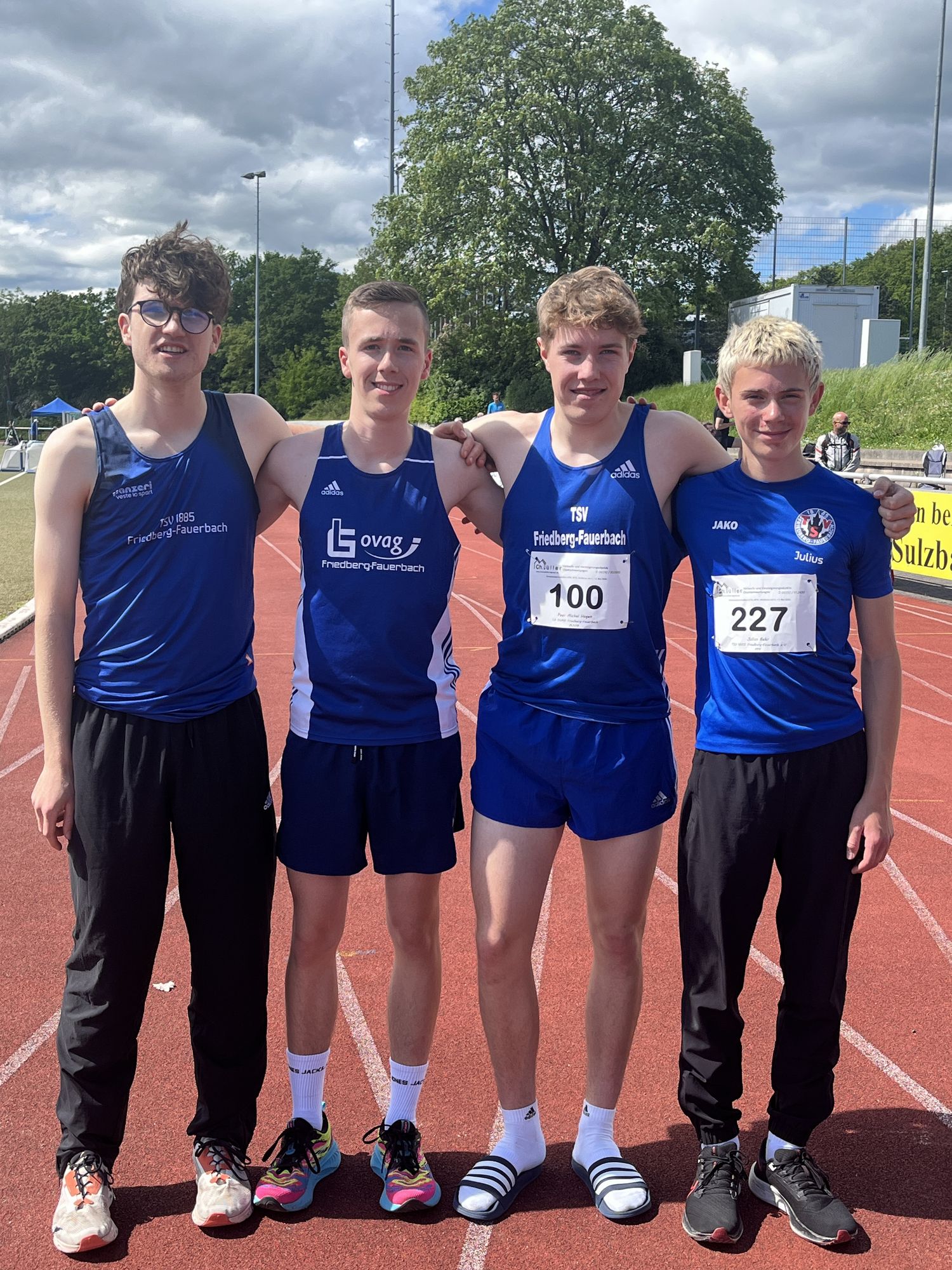4x100 m: 1. LG Ovag Friedberg-Fauerbach (Manuel Christof, Felix Roytburg, Lars Hieronymi, Tim Dillemuth) 43,57 sec.