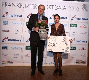 Gesa Felicitas Krause ist am Samstagabend im Rahmen der sechsten Frankfurter Sportgala als Sportlerin des Jahres geehrt worden. Der 24-jährigen Hindernisläuferin von der LG Eintracht Frankfurt wurde vom Frankfurter Stadtrat Markus Frank der begehrte Siegerbembel sowie ein Gutschein in Höhe von 300 Euro überreicht. Gesa Krause war im zurückliegenden Sommer in Amsterdam (Niederlande) überlegen Europameisterin über 3.000 Meter Hindernis in einer Zeit von 9:18,85 Minuten geworden und hatte bei den Olympischen Spielen in Rio mit deutschem Rekord (9:18:41) den sechsten Platz belegt. Zur Wahl gestanden hatten auch die Olympiafünfte Carolin Schäfer (TV Friedrichstein/Siebenkampf) und Betty Heidler (LG Eintracht Frankfurt/Hammerwurf). Die EM-Silbermedaillengewinnerin und Olympiavierte wurde zwei Monate nach ihrem letzten Hammerwurf auf Borkum mit einem Sonderpreis verabschiedet.<ENDE/>
