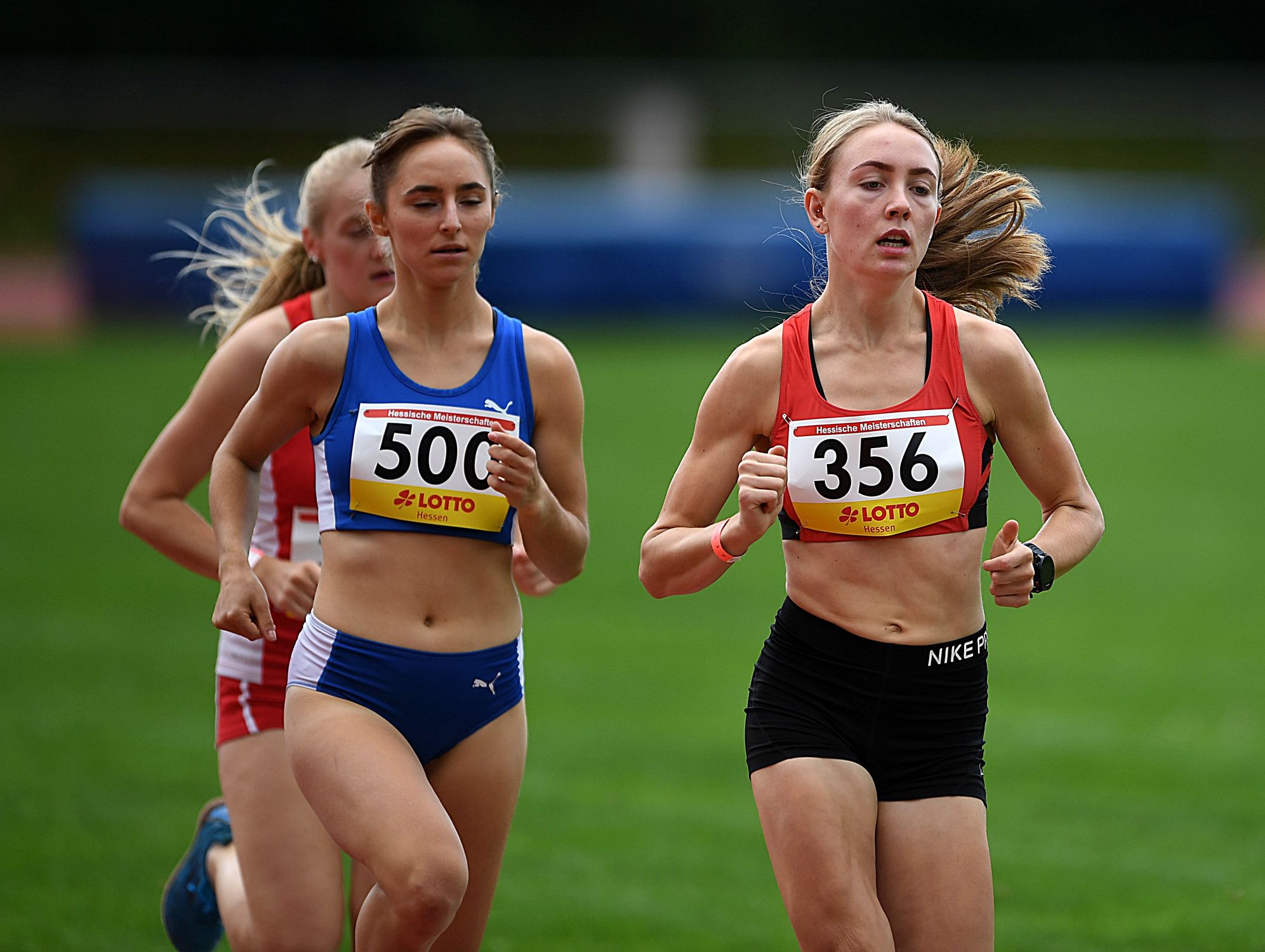 Auf der Stadionrunde blieb ein Duo unter der „60-Sekunden-Marke“. Lokalmatadorin Anna Hülsmann (LG OVAG Friedberg-Fauerbach) setzte sich gegen Mittelstrecklerin Sina Moira Wiedmann (Eintracht Frankfurt/59,54 sec.). Die Eintrachtlerin hatte ein wahrlich strammes HM-Programm. Nach dem Titel über 1500 Meter (4:45,26 min.) ging auch noch „Gold“ über 800 Meter (2:20,21 min.) an die Adlerträgerin. Maren Guthier (TV Groß-Gerau) holte sich mit 2:21,46 Minuten die Vizemeisterschaft. Franziska Baist (SGK Bad Homburg), war als Athletin der W30 die „älteste“ Starterin im nur fünfköpfigen Feld über 5000 Metern. Die erfahrene Kurstädterin spulte kontrolliert Runde um Runde ab und hatte nach 17:47,19 Minuten den Titel vor Leonie Gieser (LC Olympia Lorsch/18:13,91 min.) sicher.