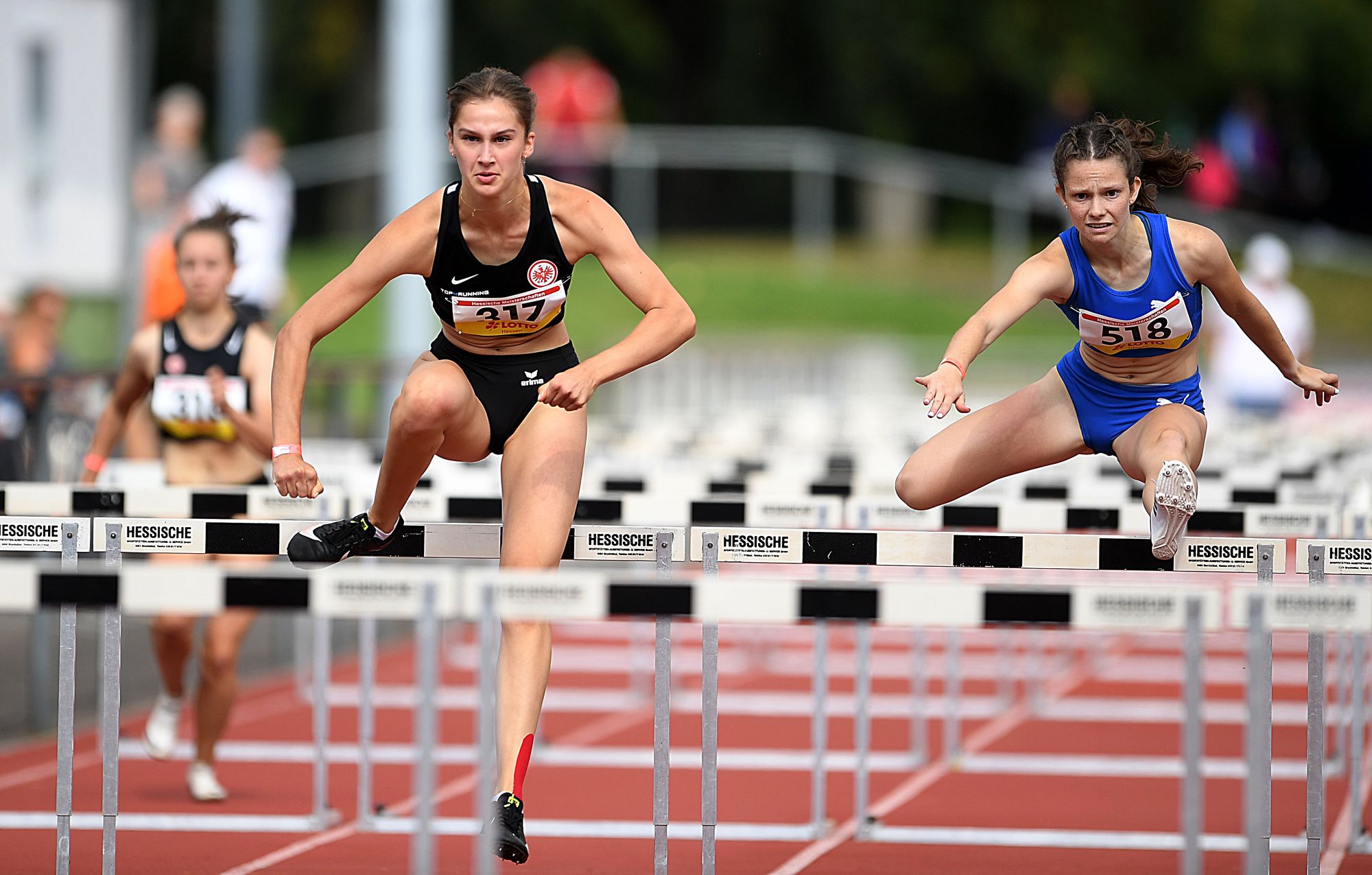 Zwei Rennen über die 100 Meter Hürden absolvierte Finja Köchling (Eintracht), die noch der Jugendklasse U18 angehört. Beim Kampf um die Medaillen holte sich Finja in 15,28 Sekunden hinter Gartmann Silber und steigerte eine gute Stunde später ihre Zeit in einem Einlagelauf dann noch auf 15,18 Sekunden. Über 4x100 Meter konnten die Friedberger Frauen (Schulz, Hülsmann, Wilhelm, Hode) in 48,81 Sekunden einen klaren „Heimsieg“ bejubeln. Das Podium komplettierten hier die Teams des Wiesbadener LV (50,09 sec.) und der LG Eder (51,14 sec.). Im Hochsprung setzte sich Juliane Kratz (TV Gelnhausen) mit 1,68 Metern problemlos durch. Barbara Rickert (LG Seligenstadt) zeigte im Stabhochsprung mit 3,30 Metern eine passable Leistung. Bei der Weitenjagd kratzte Carolin Kupsch (SSC Velar) mit 5,92 Metern an der Sechster-Marke. Mehrkämpferin Finja Köchling (Eintracht/U18) stockte hier als zweite mit 5,65 Metern ihre Medaillen-Sammlung auf. Im Dreisprung trug sich Lene Maurer (Königsteiner LV) in die Siegerinnen-Liste ein. Der Neuzugang beim Verein aus der Burgstadt zeigte nach reichlich Verletzungssorgen in den letzten Jahren eine sehr stabile Saison mit diversen guten Weiten. Nach der süddeutschen Vizemeisterschaft (U23) folgte jetzt der Hessen-Titel in der Frauenklasse. Maurer hatte ihren besten Versuch nach „Hop-Step-Jump“ bei 11,94 Metern und setzte sich damit gegen Lisa Strieder (LG Eder/11,62 m) durch.