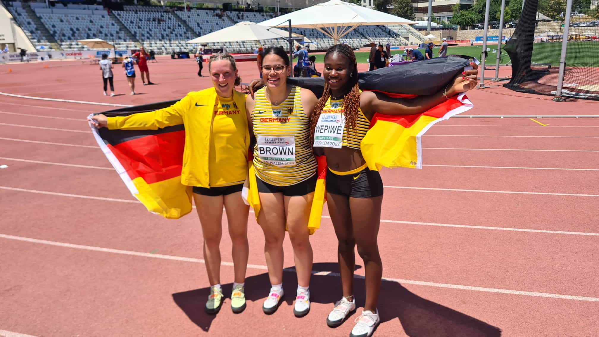 Die Wehrheimerin hatte als bis dahin Führende den letzten Wurf und somit noch die Chance zur Ergebniskorrektur. Das gelang aber mit 49,71 Meter nicht. Somit gab es durch Brown und Wepiwe einen „hessischen“ Doppelsieg. Lea Bork sorgte als Dritte für einen historischen deutschen Dreifach-Triumph, den es so in der Geschichte der U20 EM noch nicht gab. Die drei Top-Werferinnen trennten am Ende lediglich 47 Zentimeter, was die Hochklassigkeit des Wettkampfes eindrucksvoll unterstreicht.