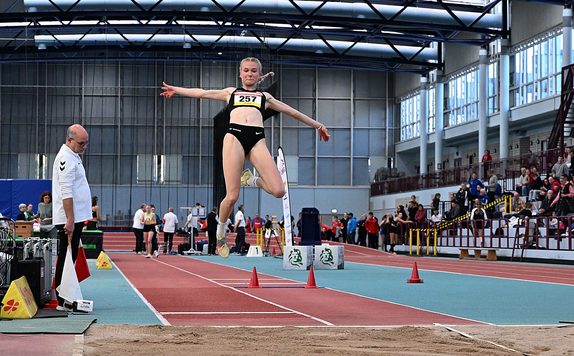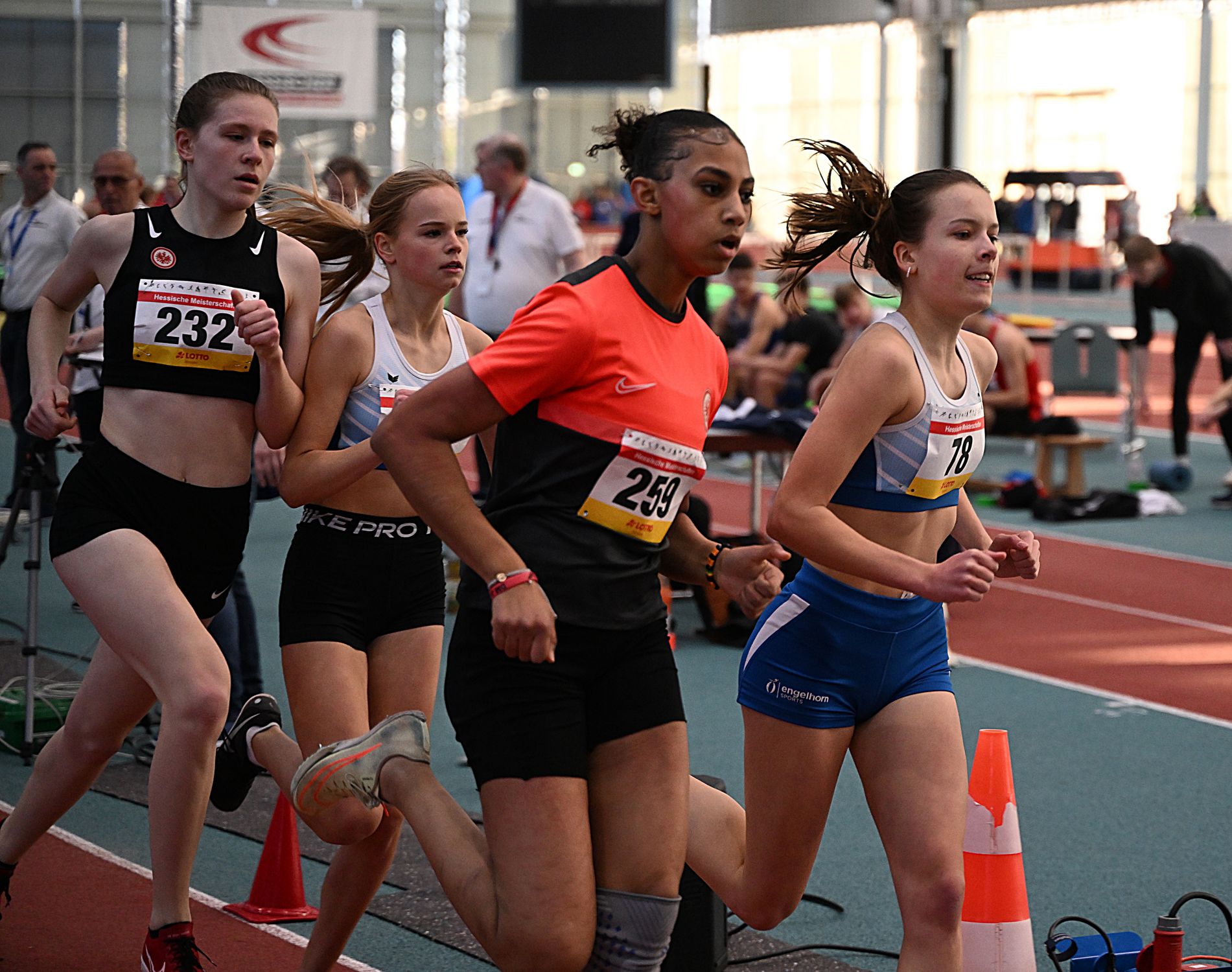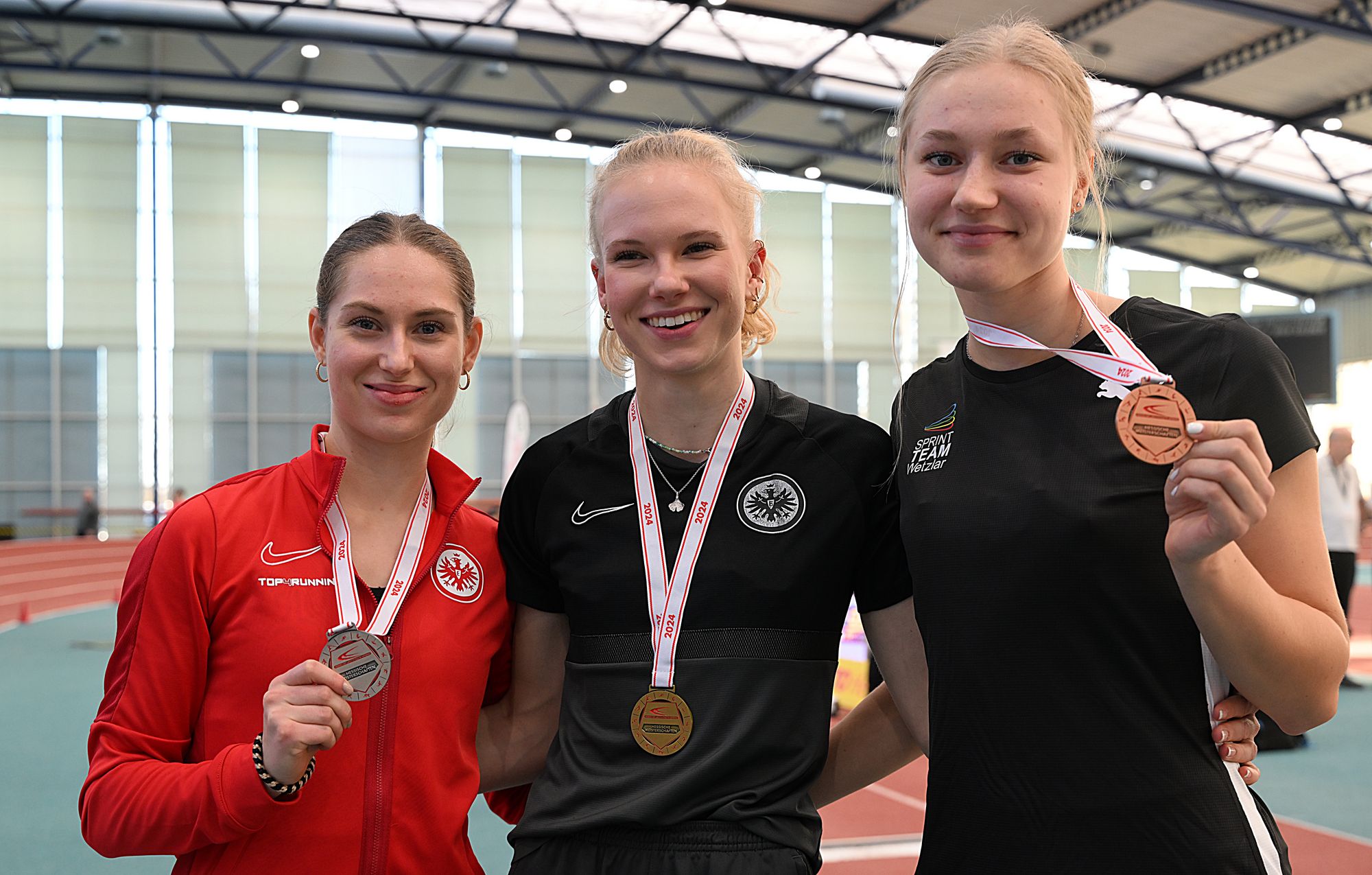Malin Stavenow (Eintracht Frankfurt) startete gleich in drei Disziplinen, holte herausragend drei mal Gold und die Normen für die Deutsche Meisterschaft in Leipzig. Ihre stärkste Disziplin war mit einer Top-Zeit von 7,52sek. die 60m, den Weitsprung gewann sie souverän mit 6,30m. Das dritte Gold gewann sie mit ihren Vereinskolleginnen in der 4x200m Staffel vor der Staffel der LG Bad Soden/Neuenhain und der StG Frankenberg/Korbach 1.