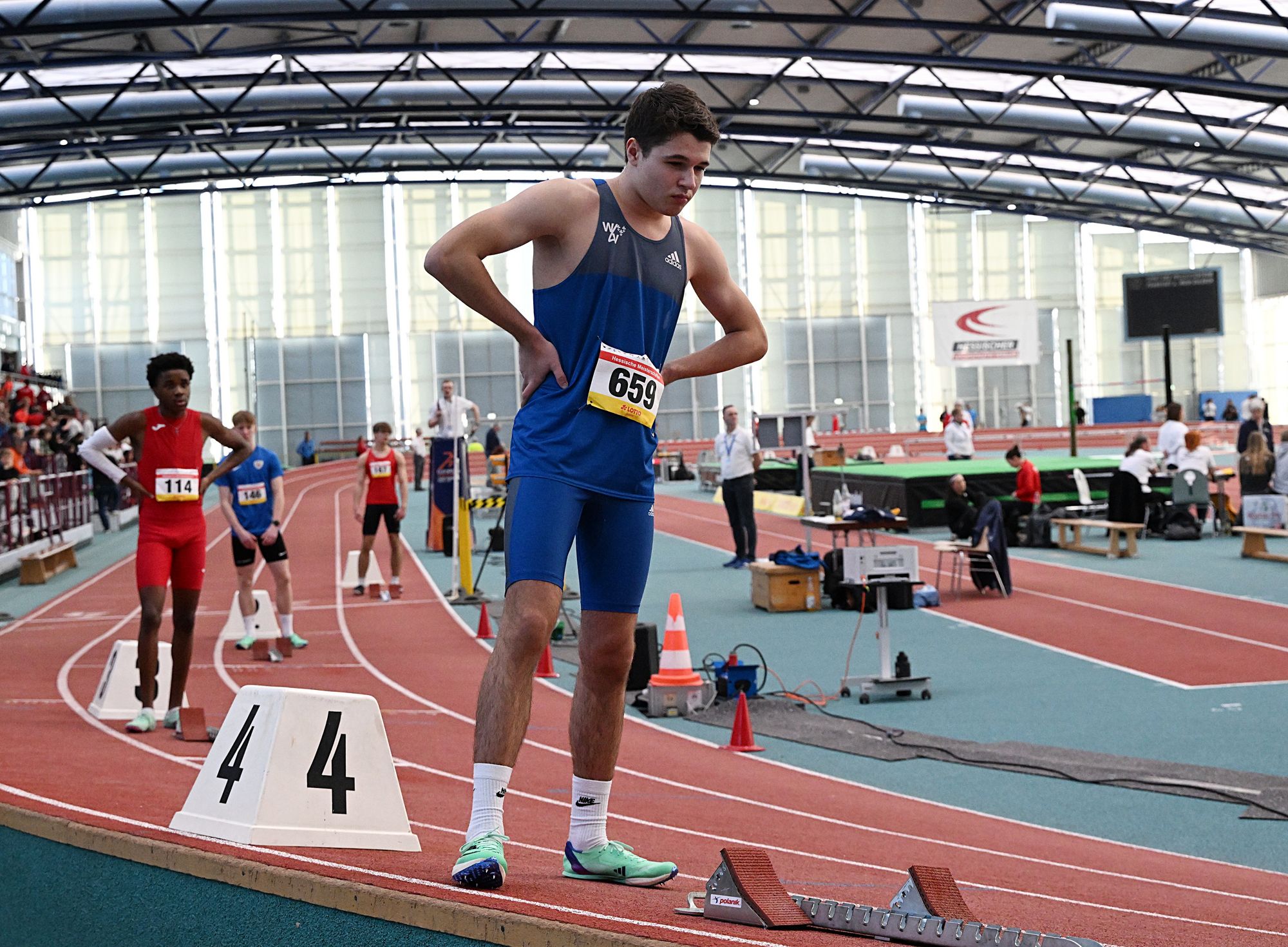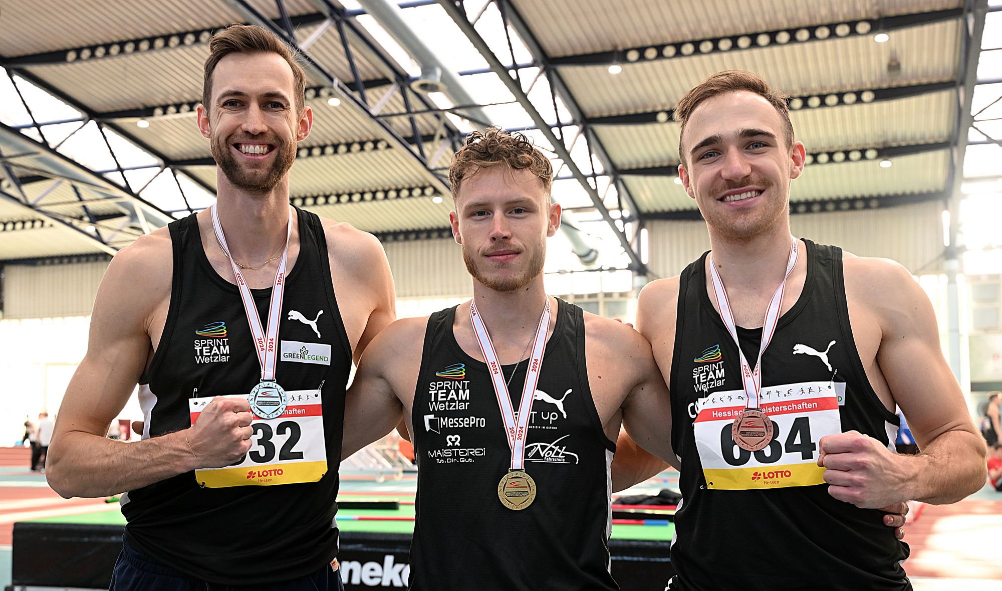 Allen voran Kevin Kranz, der mit einem starken ersten Wettkampf in sein Olympia-Jahr 2024 einstieg. Auf 6,60sek im Zwischenlauf folgten 6,59sek im Finale, inklusive Hessenmeistertitel. Das Podest vervollständigten zwei weitere Athleten des Sprintteam Wetzlar. Yannic Berthes (6,71 sek.) und Elias Goer (6,76 sek.) freuten sich mit Top-Zeiten über Silber und Bronze.