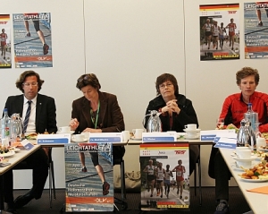 Etwas mehr als drei Monate vor den Deutschen Leichtathletik-Meisterschaften in Kassel finden auch am nächsten Sonntag (17. April) im Landesverband Hessen nationale Titelkämpfe statt. Und zwar im Halbmarathon über 21,1 Kilometer im südhessischen Griesheim. Gestartet wird um 11.30 Uhr und gelaufen wird auf einem etwa 2,5 Kilometer langen Kurs, der als Pendelstrecke viermal zu bewältigen ist. Die Zahl der Teilnehmer (mehr als 700) liegt deutlich über dem Vorjahresniveau, als die Halbmarathon-DM in Bad Liebenzell stattfand. Was zum einen für die Attraktivität des traditionellen Lauf-Standorts Griesheim und zum anderen für das Renommee des Merck Straßenlaufs spricht, der weitere knapp 700 Starter anlocken wird. Griesheim und Laufen - das gehört seit 40 Jahren einfach zusammen. Wobei aus dem 25-Kilometer-Rennen zu Beginn längst ein Halbmarathon geworden ist, was am Wohlklang der Namen früherer Sieger (Charlotte Teske, Lutz Philipp, Günter Mielke, Edmundo Warnke, Vera Michallek) natürlich nichts ändert. Auf einer Pressekonferenz im Haus des Namensgebers Merck KGaA in Darmstadt informierten die DM-Veranstalter vom TuS Griesheim über den letzten Stand der Vorbereitungen.<ENDE/>