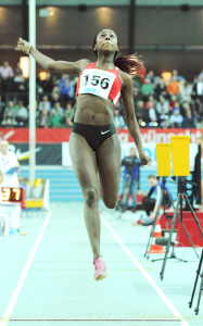 Weitspringerin Maryse Luzolo ging mit einer knapp drei Jahre Hallenbestleistung (6,47 Meter) in den Wettkampf. „Es war höchste Zeit, dass sich daran etwas ändert“, sagte sich die Athletin im Trikot des Königsteiner LV. Sie sollte diese Vorgabe einlösen. Im vierten Versuch leuchteten 6,51 auf der Anzeigetafel auf. „Bei dem Sprung hat alles gepasst. Das kommt bei mir leider noch zu selten vor. Mein Anlauf ist noch nicht stabil genug.“ Gefährden konnte sie die Siegerin Alexandra Wester vom ASV Köln zwar nicht, im sechsten Versuch landete die Weltjahresbeste (6,95) mit 6,75 ihren weitesten Sprung. Doch den zweiten Platz sollte Luzolo verteidigen. Die höher eingeschätzten Melanie Bauschke (LAC Olympia Berlin/6,42) sowie die Vorjahreszweite Xenia Stolz (Wiesbadener LV/6,41) blieben beide unter ihren Möglichkeiten, sodass Maryse Luzolo und Alexandra Wester zusammen feiern durften. Wester und Luzolo kennen sich bereits seit 13 Jahren, so die Hessin. Seit Westers Rückkehr aus den USA vor einem Jahr stehen sie wieder regelmäßig in Kontakt. Westers Nehmer- und Comeback-Qualitäten machen Luzolo Mut für die Zukunft. „Alexandra ist mein Motivationscoach.“