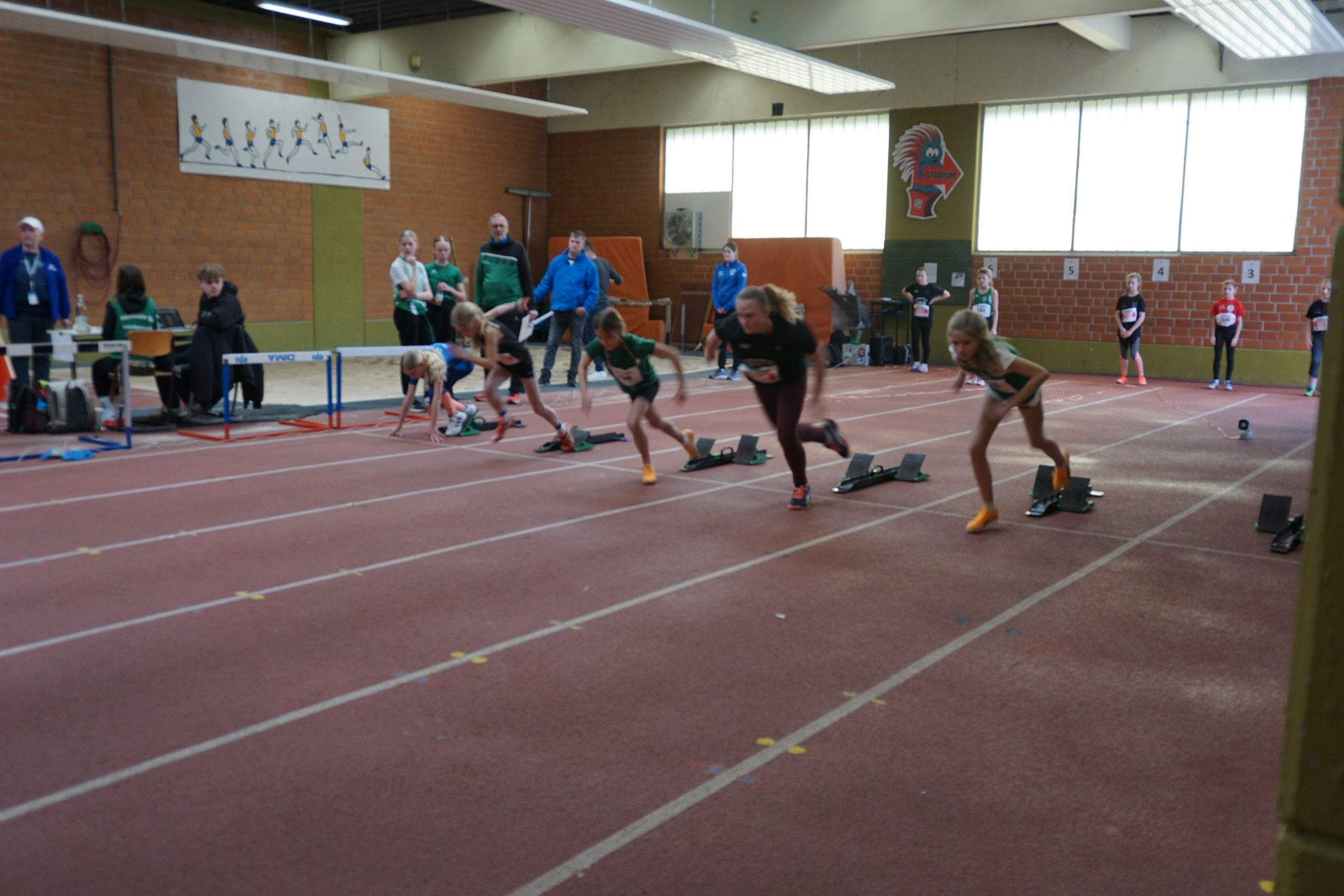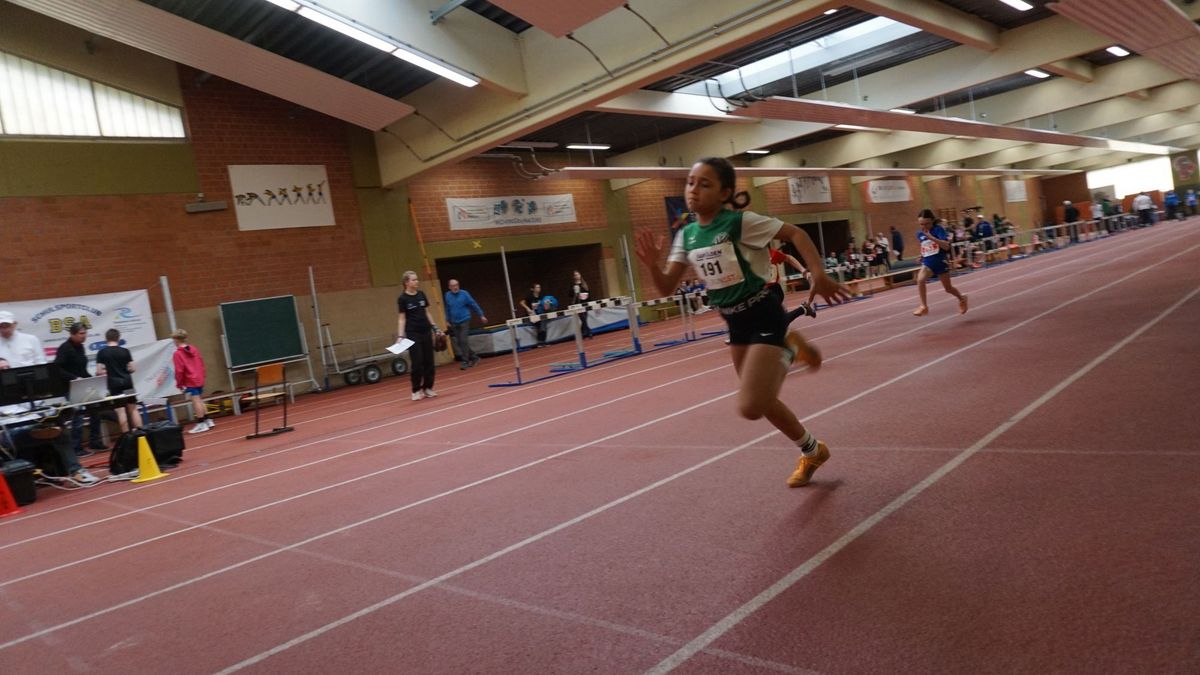 Was war passiert? Da haben sich zwei Trainer, der Andreas und der Rainer unterhalten! Da war auch Thema, dass es in der Wintersaison für unsere jungen Athleten der U12 und U14 fast keine Möglichkeiten gibt mal auf Tartan in der Halle zu starten. Der Andreas meinte: „Dann kommt doch zu unseren Hallen-Kreismeisterschaften!“. Und der der Rainer griff dankend zu! Ja, und so waren wir dann am heutigen Samstag in Bad Sooden-Allendorf in der dortigen Leichtathletikhalle „aW“ im Einsatz.