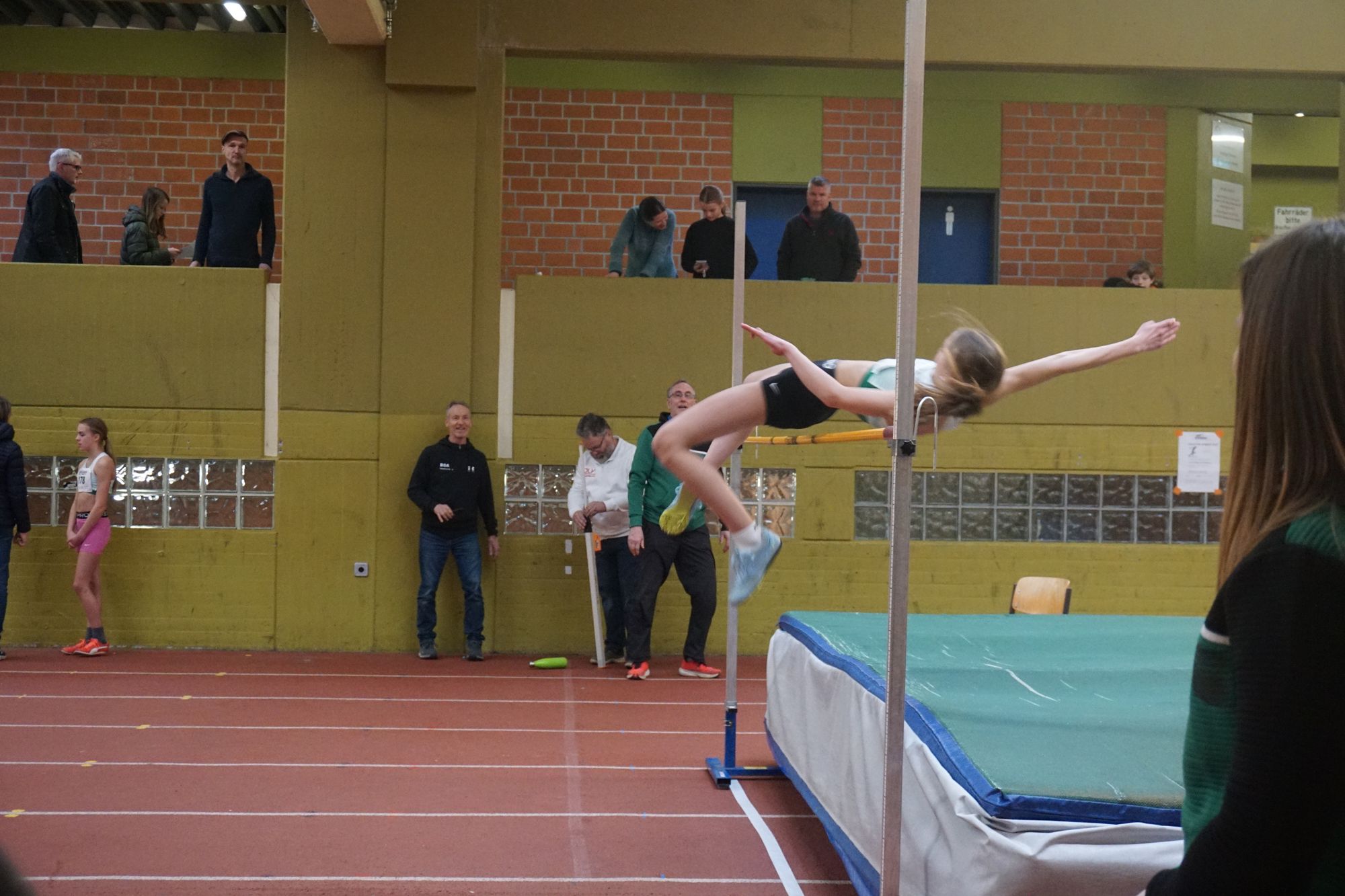 - Lia Laudt (W13) überspringt 1,44m und bei 1,48m fällt die Latte mit einiger Verzögerung.