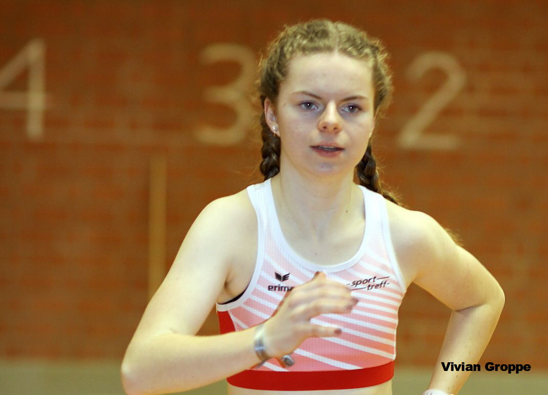 Trotz einer Vielzahl von Starts in diesem Winter zeigt die Formkurve von Luis Andre weiter nach oben. Nach 13,98 m im vierten Durchgang steigerte sich der 1,88 m große Nachwuchs-Athlet im letzten Versuch des Kugelstoßens der M 15 auf 14,11 m (4 kg). Da hatte selbst der Niederländer Jip de Greef (11,47 m) nicht Gleichwertiges entgegen zu setzen. Über 60 Meter der W 15 bekam es Vivian Groppe ebenfalls mit jungen Athletinnen aus den Niederlanden zu tun und sprintete in 7,94 Sekunden hinter Britt de Blaauw (7,88 s) auf den Silberrang. Mehr noch beeindruckt der Sieg der Schülerin aus Beiseförth in 42,88 Sekunden über 300 Meter vor Nina Bungart (DJK Brambauer/44,35 s).