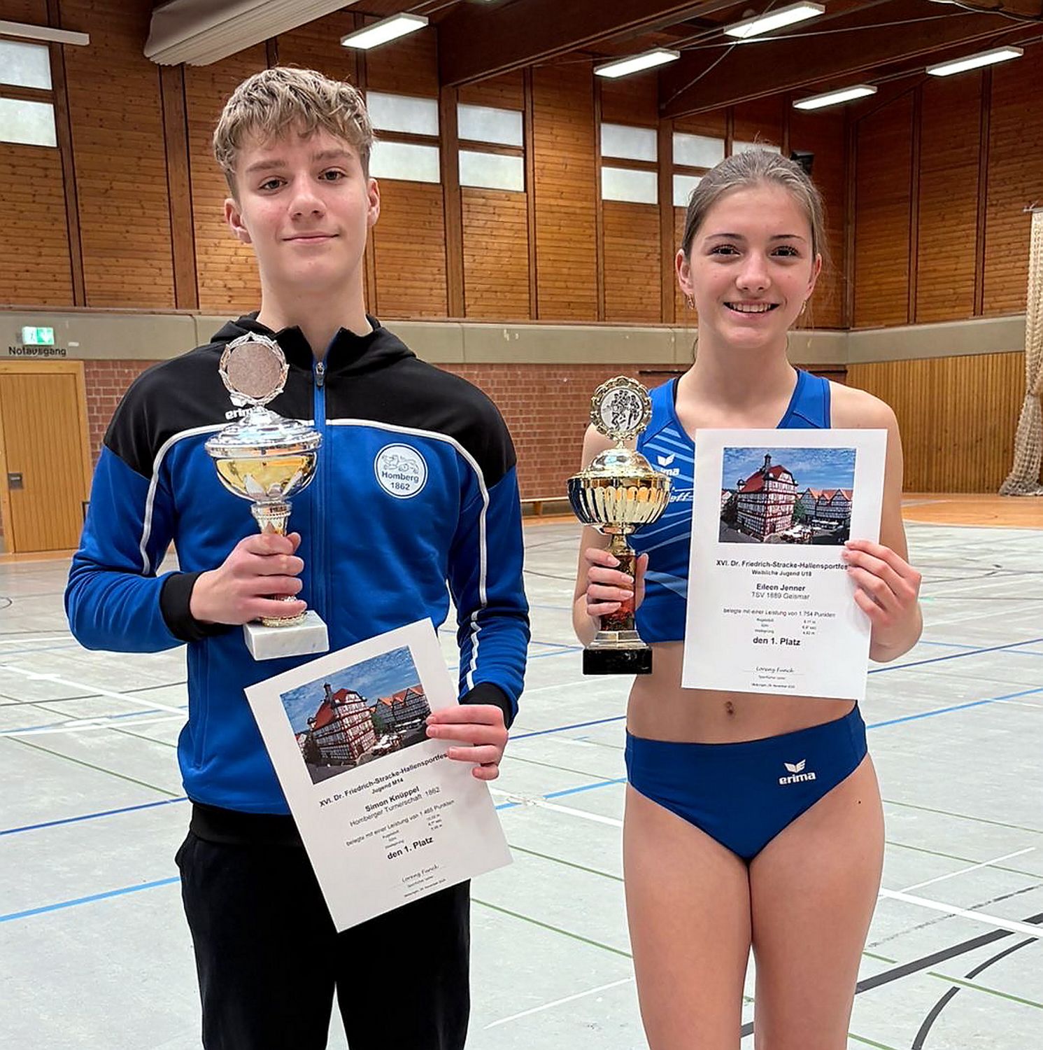 Simon Knüppel (HT/M 14/1465) bleibt der erfolgreichste Mehrkämpfer der Jungen und wurde von MT-Abteilungsleiter Hans-Jörg Engler ebenso wie Eileen Jenner mit einem Pokal ausgezeichnet. 5,06 Meter im Weitsprung ragen heraus. Im Sommer hat man nicht viel von ihm gehört. Jetzt ist David Mannweiler (MT/U 18/1450) wieder da und fiel besonders mit einer Steigerung auf 11,57 Meter im Kugelstoßen (5 kg) auf. Mit Ivo Anders (HT/1305), dem MT-Duo Simon Curdt (1234) und Ole Hertel (1234) sowie mit Benjamin Wagner (HT/1217) liegen weitere junge Mehrkämpfer in Lauerstellung.