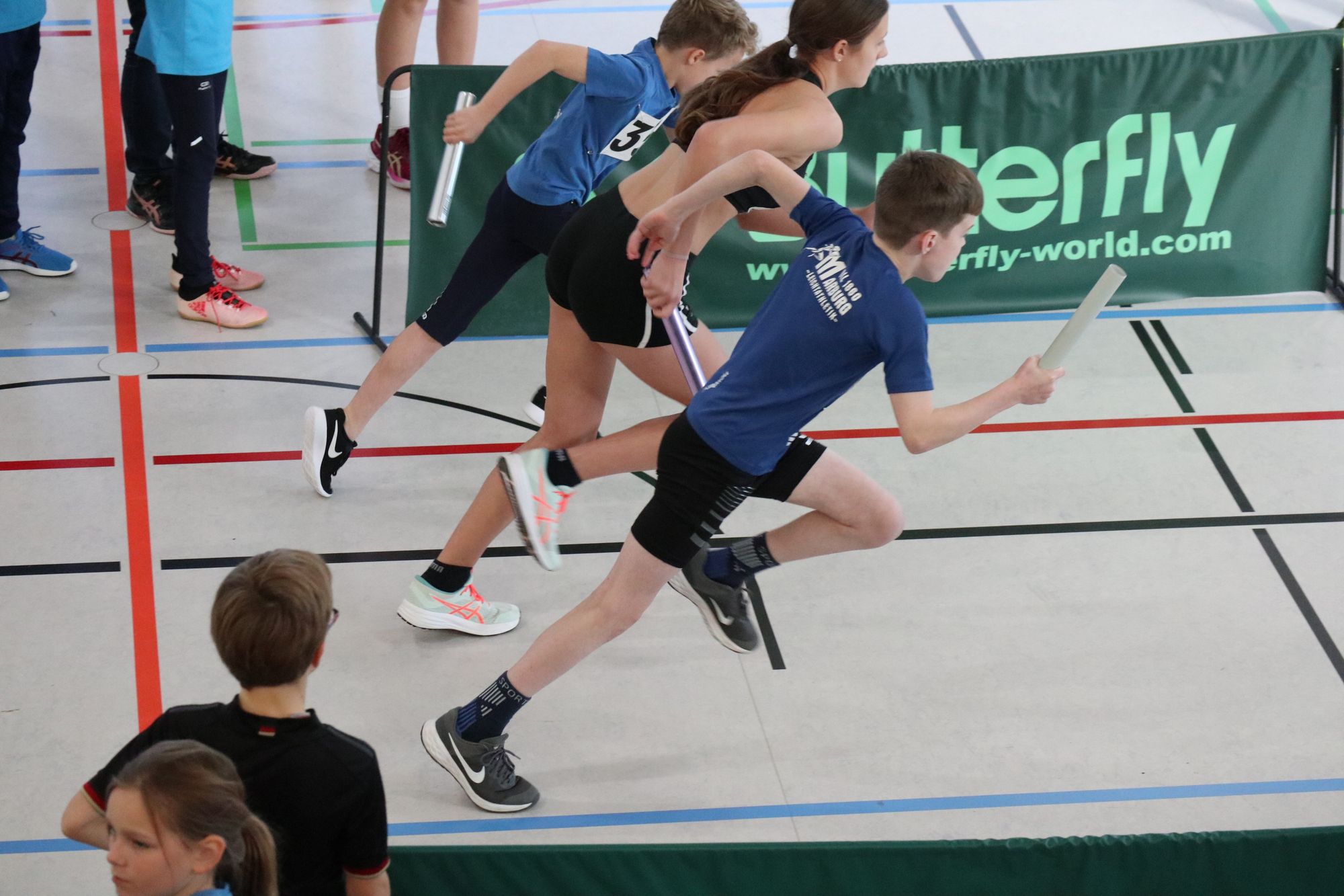 Abschließend durften auch die U12 über die 4x1 Runde antreten. Mit Abstand am schnellsten kam bei den Mädchen die Startgemeinschaft von Langgöns und Marburg ins Ziel (1:09 Minuten), die Startgemeinschaft TV Wetzlar und TSV Nauborn wurde zweiter (1:19 Minuten) und das L-Team Butzbach hat sich mit dem TV Hüttenberg zusammen den dritten Platz gesichert (1:20 Minuten). Bei den Jungen siegte der TSV Nauborn mit Heuchelheim knapp vor Langgöns mit dem TV Wetzlar (1:11 und 1:14 Minuten).