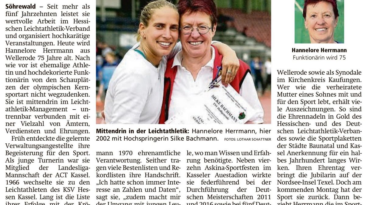 Hanne Herrmann wird 75 - Fünf Jahrzehnte für die Leichtathletik