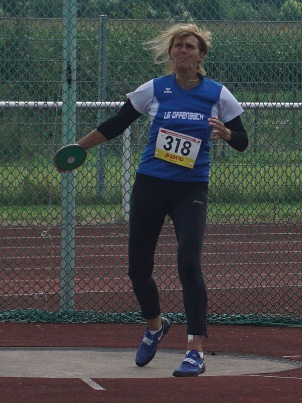 Hessenmeisterin mit dem Diskus wurden Monika Hedderich (LG Offenbach/W70) mit 22,36 Metern und Silke Stolt (LAZ Bruchköbel/W50) mit 33,95 Metern.