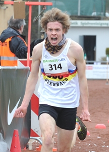 Dennoch konnte Hild dank des soliden Formaufbaus seine Kraftausdauer auf der anspruchsvollen 4,5-Kilometer-Strecke durch den wellig angelegten und teils knöcheltief aufgeweichten Hertener Stadtpark so gut umsetzen, dass er die gesamte Schlussrunde das Tempo rennentscheidend hoch hielt. Damit zermürbte er den spurtstarken Nick Jaeger (TSV Penzberg/15:31 Minuten), der zunächst eine Zehn-Meter-Lücke zulief und 300 Meter vor dem Ziel kurzzeitig in Führung ging, dem Konter von Hild (15:30 Minuten) dann aber nicht mehr gewachsen war. „Eigentlich kann ich gar nicht spurten, habe mich aber erinnert, dass ich bei der Hessenmeisterschaft vor dem Ziel ähnlich zurückgefallen war und doch noch gewonnen habe", wird Hild auf leichtathletik.de zitiert. „Ich habe gedacht: Diese Chance kommt nicht wieder und habe mir gesagt: Gib jetzt alles.“ Eine klare Sache für den SSC Hanau-Rodenbach war die Teamwertung mit 30 Punkten vor Hannover Athletics (65 Punkte) und 14 weiteren Mannschaften.