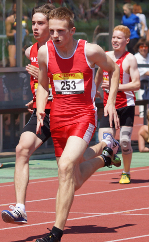 Gegenüber den Landesmeisterschaften in Neu-Isenburg vor drei Wochen verbesserte sich Nico Kühnel im Block Sprint der M15 um 14 Punkte und im Speerwurf um über drei Meter auf 43,87 Meter. Der weiteste Wurf mit dem 600 Gramm-Speer aber gelang Philipp Heckmann, der seine Bestleistung um knapp sieben Meter auf 57,05 Meter steigerte und nach zwei von fünf Disziplinen die Führung übernahm. Beide Hessen übersprangen danach 1,88 Meter (jeweils zwei Zentimeter höher als in Neu-Isenburg) und nach seiner Tagesbestzeit über 100 Meter in 11,47 Sekunden ging Nico Kühnel an die Spitze, die er auch im abschließenden Weitsprung erfolgreich verteidigte. Eine weitere Topleistung von Nico Kühnel waren die 11,05 Sekunden über 80 Meter Hürden.