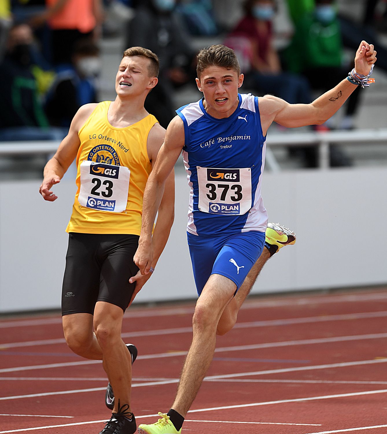 MU18, 2000 Meter Hindernis (Finale): Ein starker Endspurt brachte Jonas Helfrich (LG VfL/SSG Bensheim) in der neuen Hausrekordzeit von 6:06,98 Minuten die Bronzemedaille. Eine famose Steigerung um knapp acht Sekunden! In einem großen Feld mit 16 Teilnehmern konnte Silas Zahlten (LG Brillux Münster) mit 6:03,57 Minuten den Favoriten Noah Boeck (LG Olympia Dortmund/6:04,74 min.) knapp auf Distanz halten.