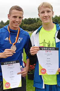 Auf dem undankbaren vierten Platz fand sich Leia Holtwick (TV Groß-Gerau) wieder, die sich über 300 m auf den neuen „Hausrekord“ von 41,26 sec. steigerte. Fabienne Fliedner (TSV Friedberg-Fauerbach) lief im Finale über 300 m Hürden (45,68 sec.) auf Rang sechs. Als Fünfte hatte Saskia Lindner (LG Eintracht Frankfurt) mit 5,30 m den Weitsprung hinter sich gebracht. Sicherlich enttäuschend für die Eintrachtlerin, die in dieser Saison bereits beeindruckende 5,86 m angeboten hat und damit zu den Anwärterinnen auf Edelmetall gehörte. Bei den Jungs erkämpfte sich Max Grabosch (SSC Hanau-Rodenbach) über 3000 m mit 9:13.09 min. die deutsche Vizemeisterschaft. Bronze über die 80 m Hürden wurde nach 10,87 sec. eine Beute von Moritz Mainka (Wiesbadener LV), der im Vorlauf mit 10,71 sec. eine neue Bestzeit aufstellte. Auch Aaron Heinz (MTV Kronberg) war in der ersten Runde mit 10,74 sec. schnell wie noch nie und somit ein Kandidat fürs „Stockerl“. Im Finale kam der MTVler dann beim Start etwas zu langsam aus den Blöcken und lief mit 10,98 sec. auf Platz vier. Julius Franzen (TSG Gießen-Wieseck) hatte beim Dreisprung nach 12,85 m die Bronzemedaille im Gepäck. Jan-Niklas Appelt (TV Gelnhausen) landete nach 12,50 m (Bestweite) als Fünfter im Sand und Bastian Mrochen (LG Reinhardswald) erkämpfte sich in einem sehr engen 800-m-Finale mit 2:01,91 min. Rang sechs.(jp)